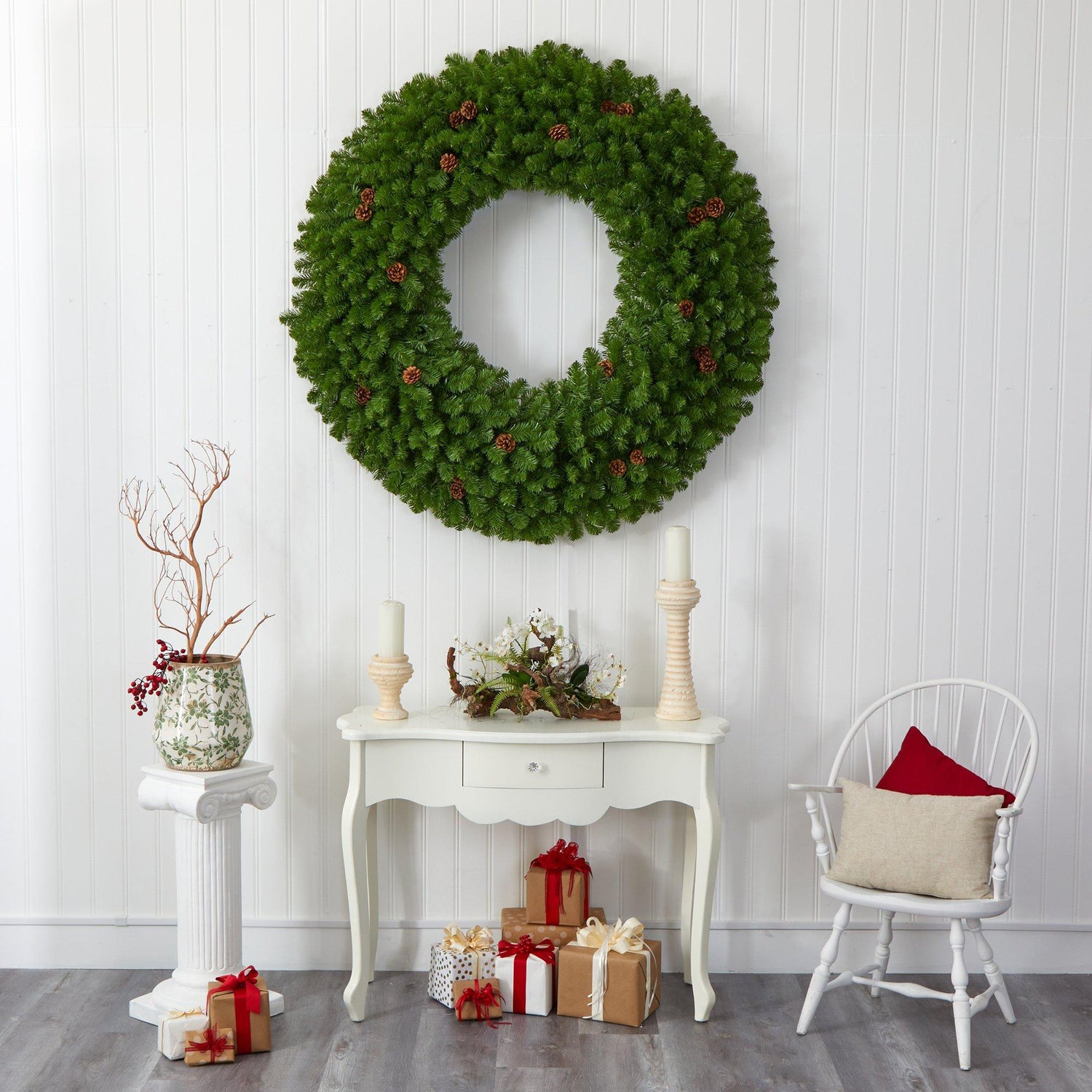 5’ Giant Artificial Christmas Wreath with 280 Warm White Lights and Pine Cones
