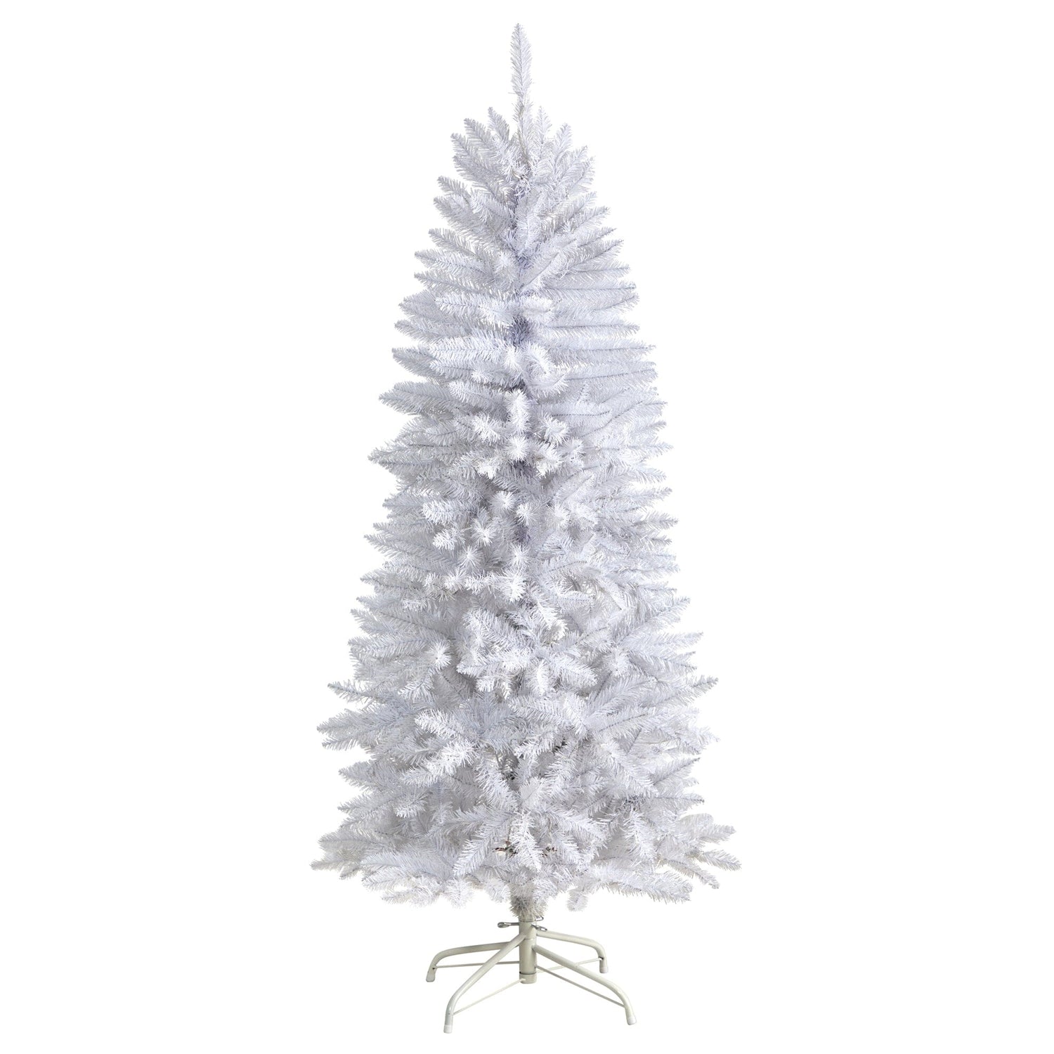 Are you dreaming of a white Christmas? Fulfill all your dreams with this white artificial Christmas tree. Inspired by nature, this tree has a slim silhouette that mimics its real counterparts' natural foliage and texture. With 491 bendable branches, you can easily display all your favorite ornaments. Standing 5' from a metal stand, curate in any compact area. Perfect for an apartment, kids' room, or home office.