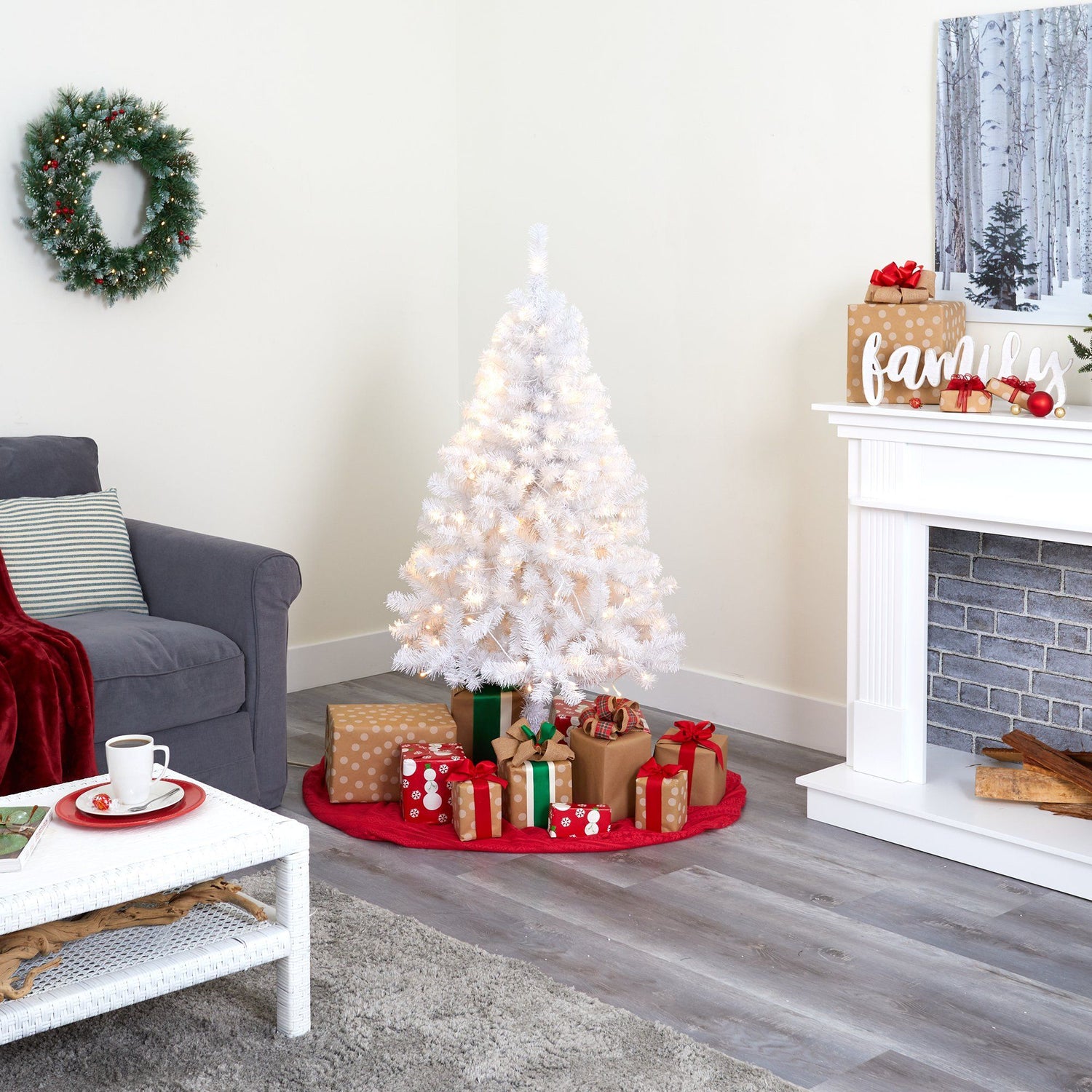 Complete a winter-inspired Christmas decor scheme this holiday with the help of this White Artificial Christmas tree. Completely maintenance-free, this all-white fake Christmas tree boasts an array of soft looking foliage made up of 350 bendable branch tips to accent with your own personalized ornaments, all beautifully designed in a palette of snow white. Pre-strung with 150 clear LED lights and stabilized on a metal stand, this festive 5’ tall winter beauty will undoubtedly create a stand-out focal point all throughout the holidays - year after year.