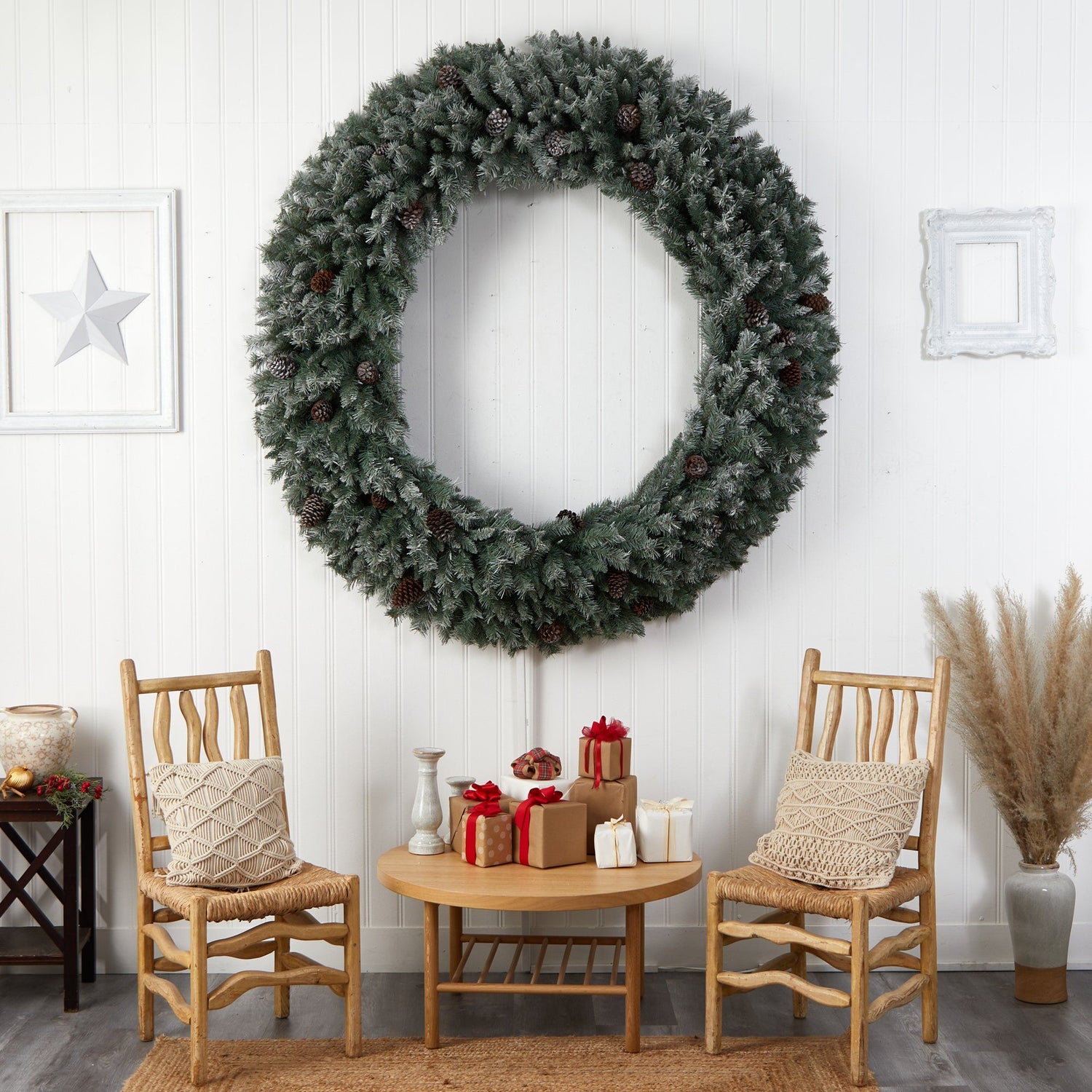 6’ Giant Flocked Christmas Wreath with Pinecones, 600 Clear LED Lights and 1000 Bendable Branches
