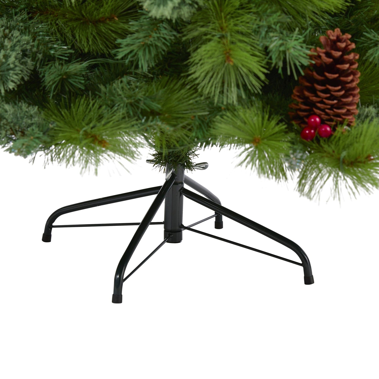 Spread seasonal cheer throughout even the smallest of spaces with the help of this artificial Christmas tree. Entirely maintenance-free, this traditional looking Christmas tree boasts a full, classic silhouette made up of 814 easy-to-bend branches for showcasing holiday ornaments, accented throughout with faux pinecones and holly berries that look incredibly lifelike, carefully stabilized on an accompanying base, this handsome 6’ tall artificial Christmas tree will complete your holiday decor - year after year.