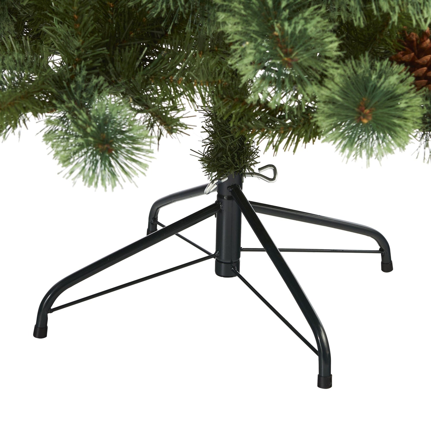 Create the ultimate holiday scene in your home or office with the help of this evergreen artificial Christmas tree; entirely maintenance-free, this realistic looking fake tree boasts a rich collection of pine foliage (323 tips to accent with your holiday ornaments!), handsomely accented throughout with faux pinecones that look incredibly lifelike and stabilized on a metal stand, this 6’ tall Christmas tree will not only make holiday decorating a breeze but ensure your home is always holiday-dressed for years to come.