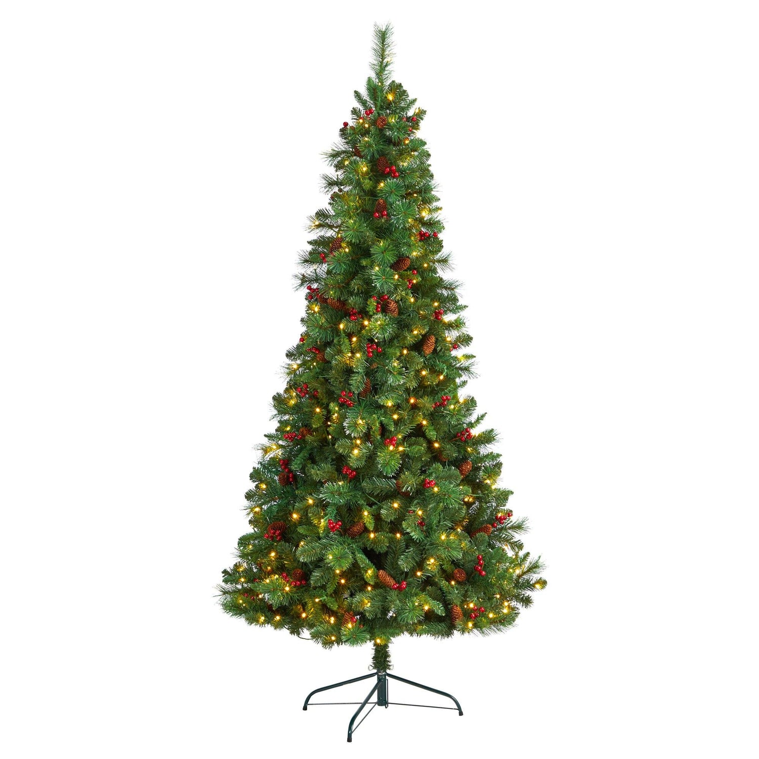 7’ Flat Back Montreal Mountain Artificial Christmas Tree with Pine Cones and Berries