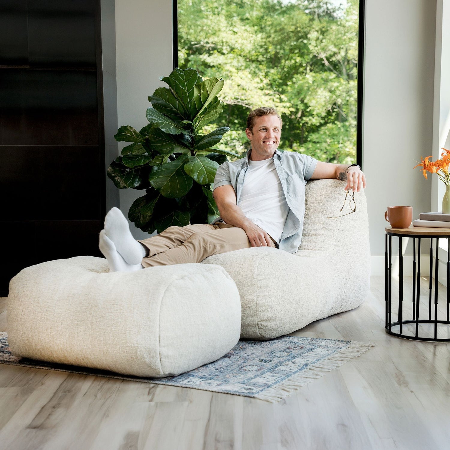The Modora chair and ottoman offer a cozy, sink-in feel with an elevated, modern design. Designed for adult spaces, this set holds its shape like real furniture and features soft, premium fabrics. The setup is simple and convenient.