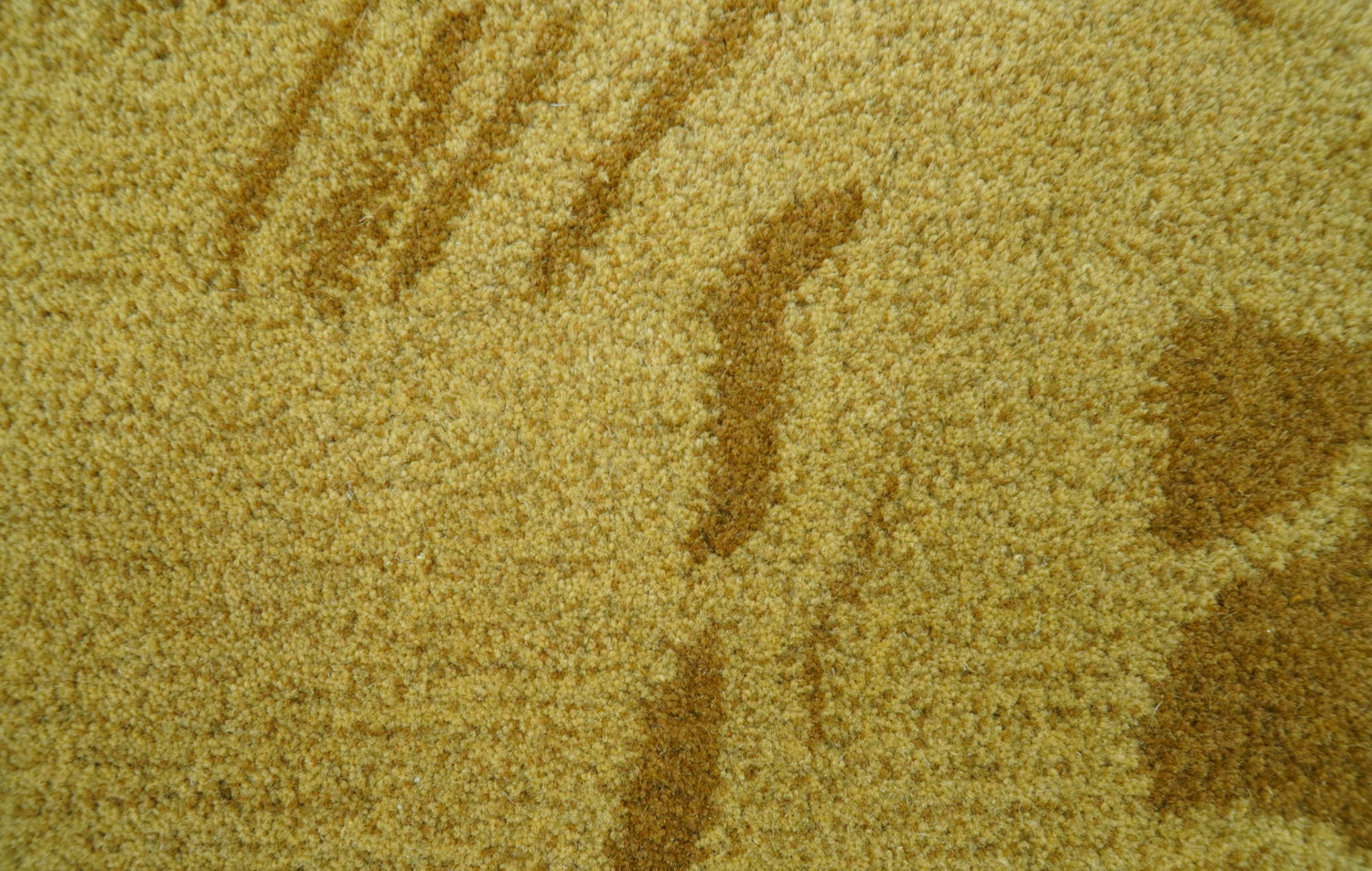 This hand-tufted camel wool rug features an elegant animal pattern in rich mustard hues. It combines artisanal craftsmanship with natural fiber durability. The sophisticated design and warm coloring create a refined texture and timeless appeal.