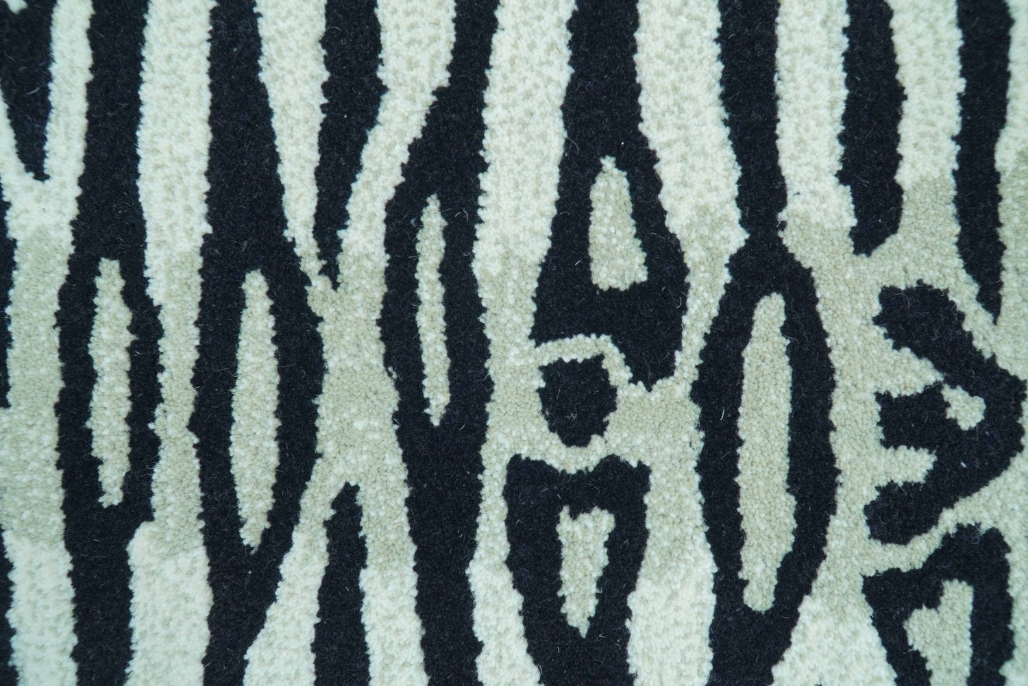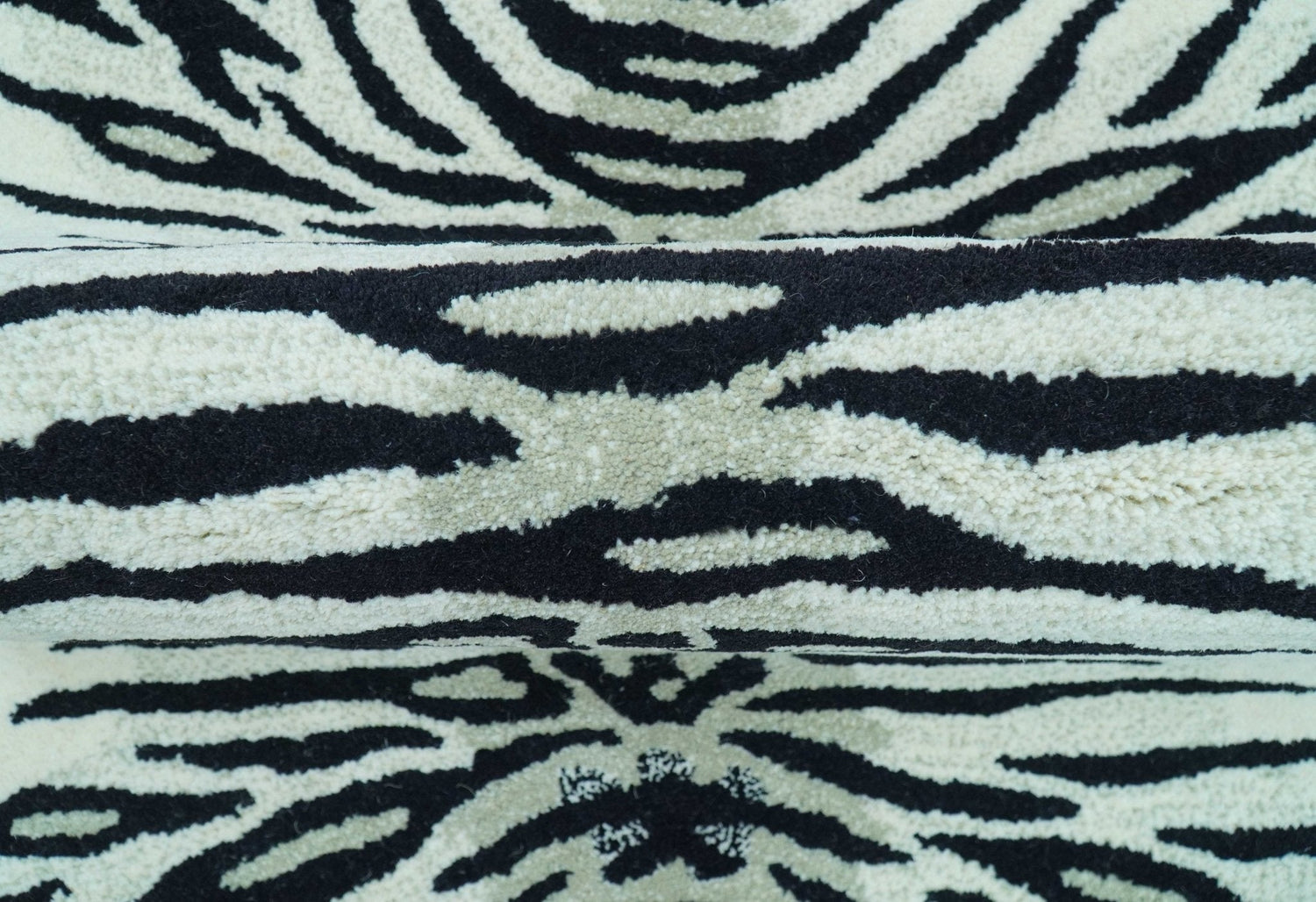 Hand Tufted 3x5 Black And White Animal Tiger Wool Area Rug