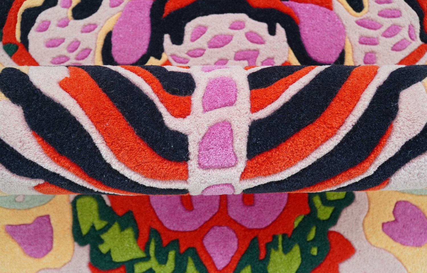 This hand-tufted wool area rug features a bold tiger design in rich black, offering visual impact and traditional craftsmanship. Its versatile size allows for placement in various rooms, and the premium wool construction ensures durability.