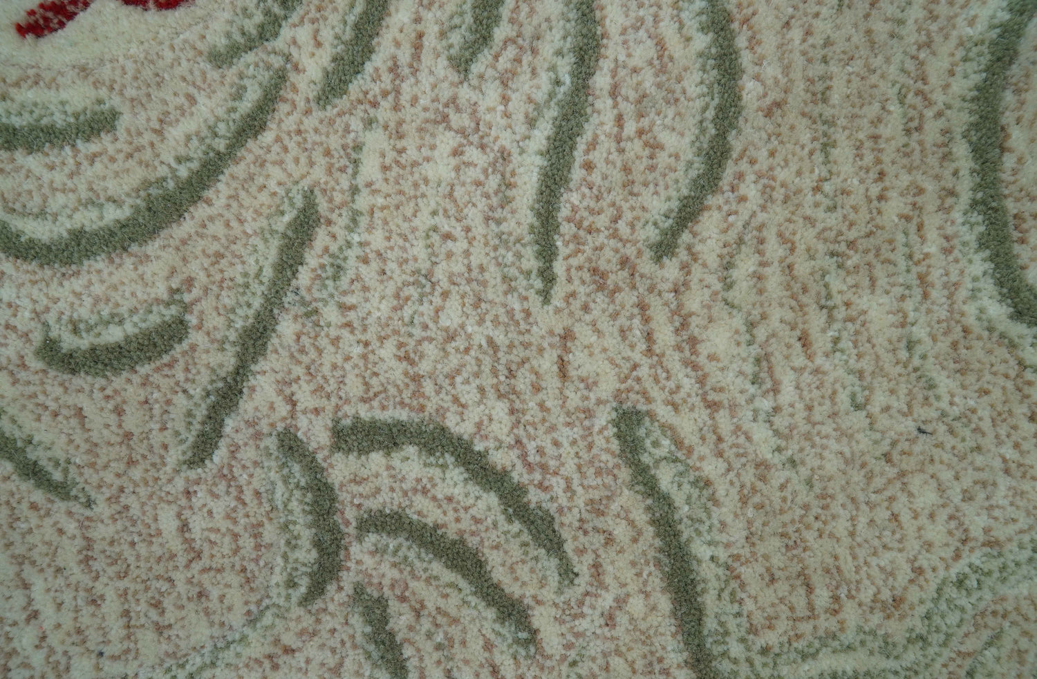 This hand-tufted wool rug features a sophisticated tiger motif in beige and olive tones. The wool construction provides durability and a tactile feel, combining functionality with artistic design.