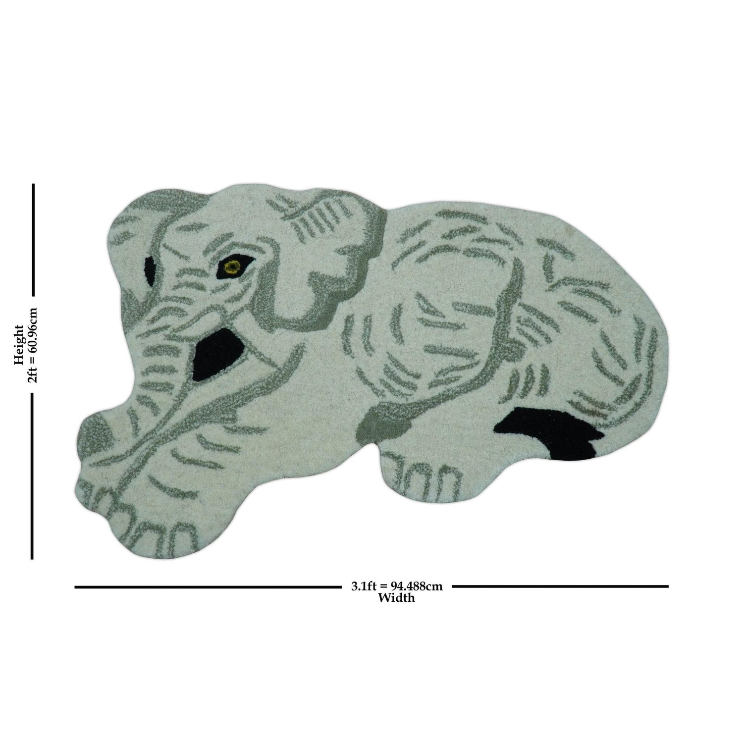 Hand Tufted White Animal Elephant 2x3 Wool Area Rug