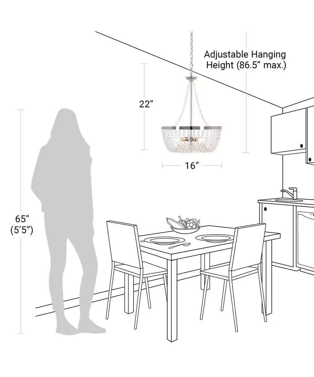 • FEATURES - Stylish crystal beads add a touch of jewelery to any home. Adjustable Hanging Length. Adjust the hang height based on room and location that provides an optimal illumination in various settings.