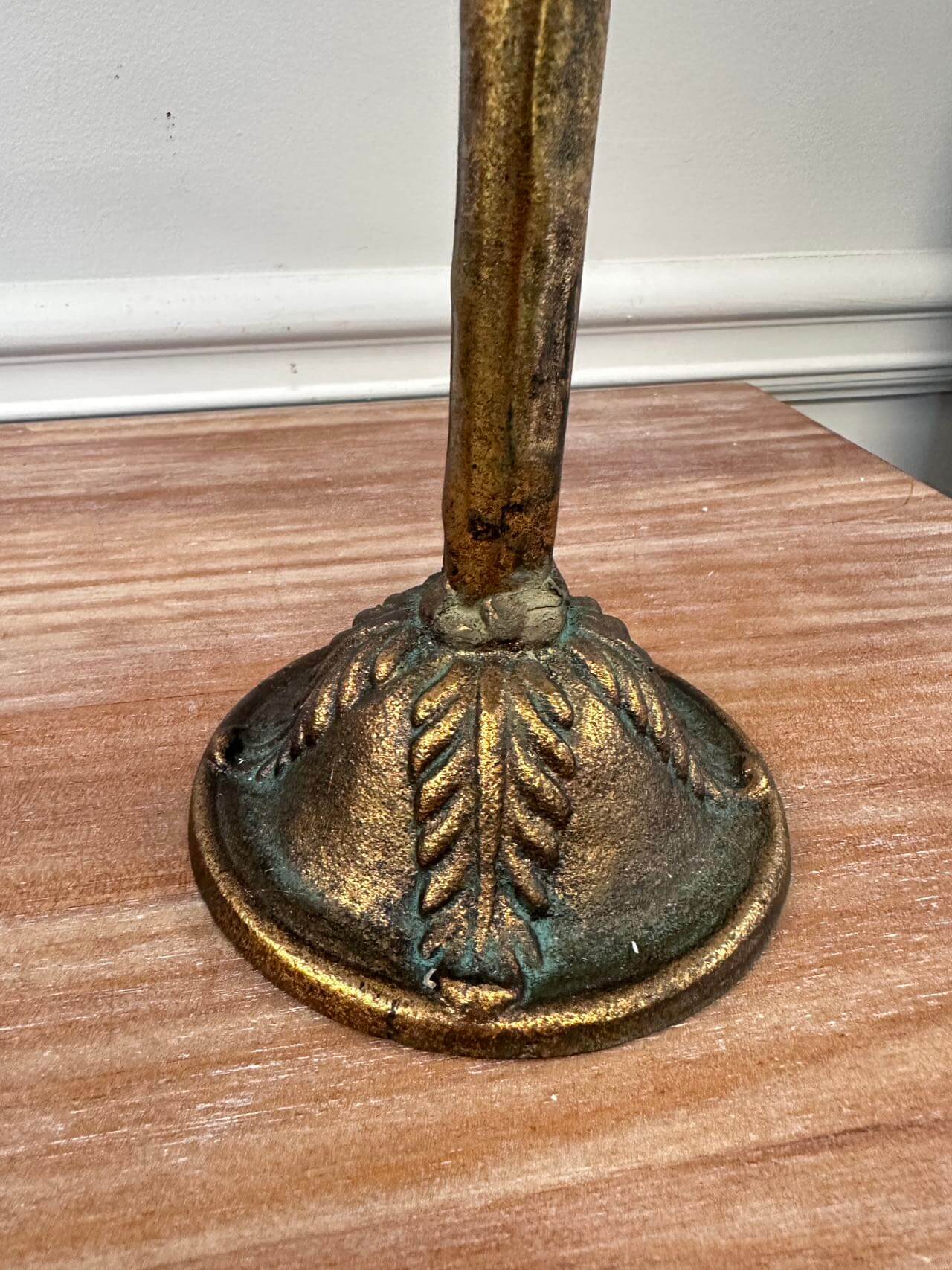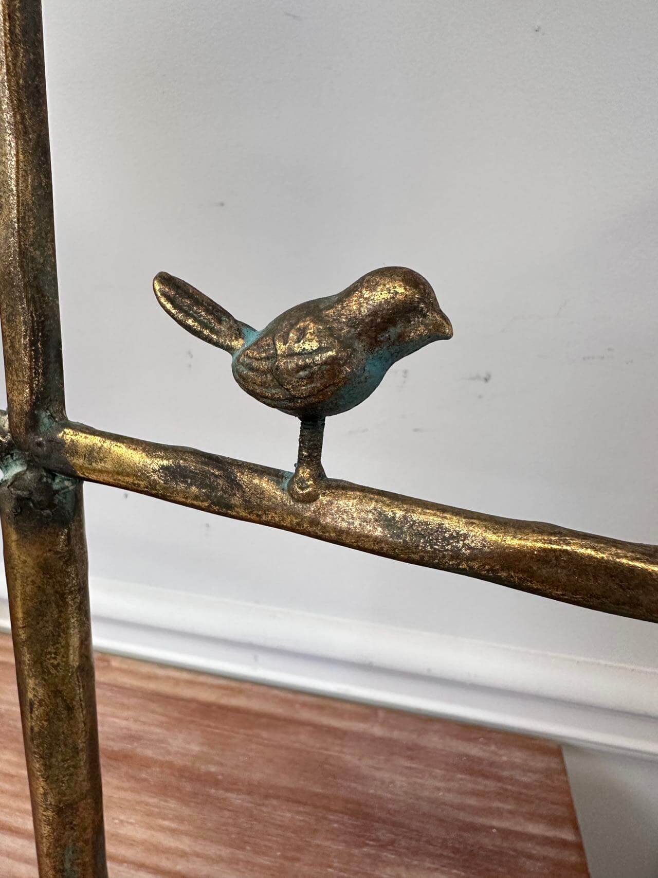 This antique amber glass votive candle holder centerpiece blends historical craftsmanship with romantic artistry. The distressed metal base is adorned with whimsical little birds perched on the curving arms, lending a playful yet refined air. The latticework enveloping each glass votive speaks to a time when artisans poured heart and soul into even the smallest decorative details. Imagine the faint scent of beeswax, the subtle sound of a match striking, and the cozy glow that instantly transforms a room into a sanctuary.