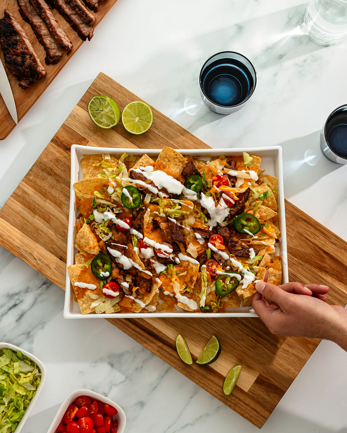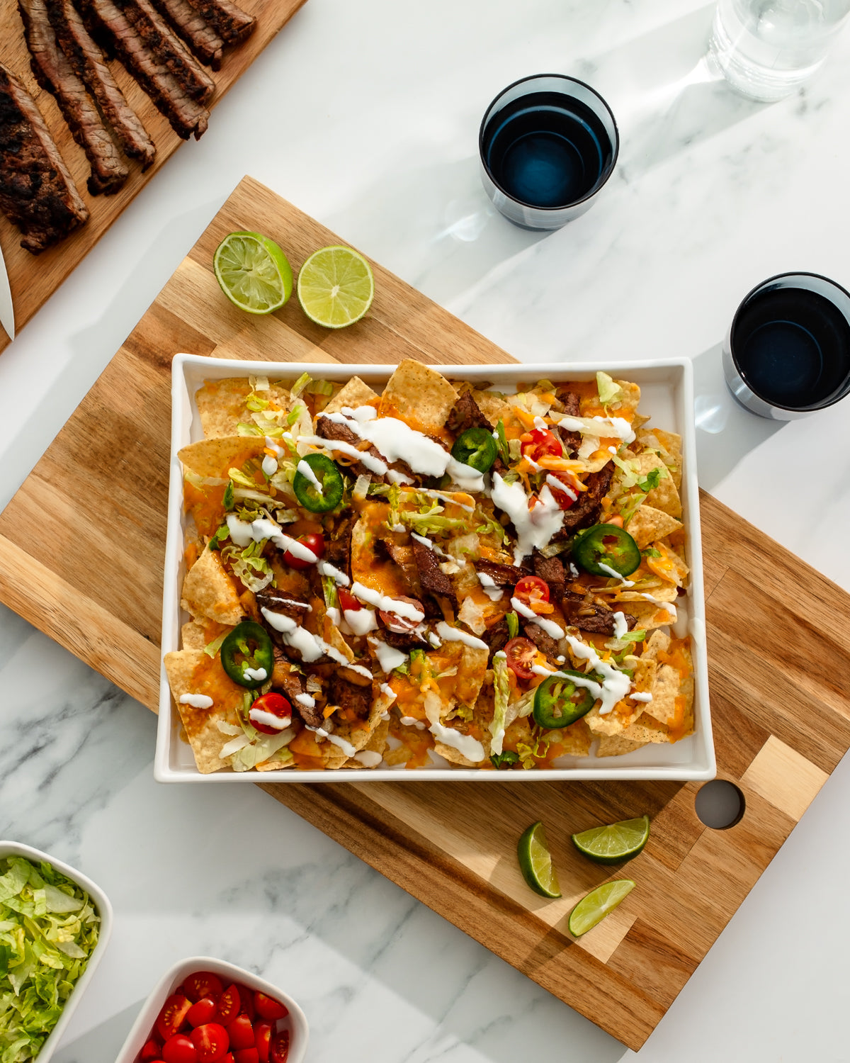 At 11.8" × 9" × 1.5", it’s just the right size for a loaded burger, a stack of elk sliders, or snacks for the next game night. The glossy white glaze means cleanup’s a breeze.