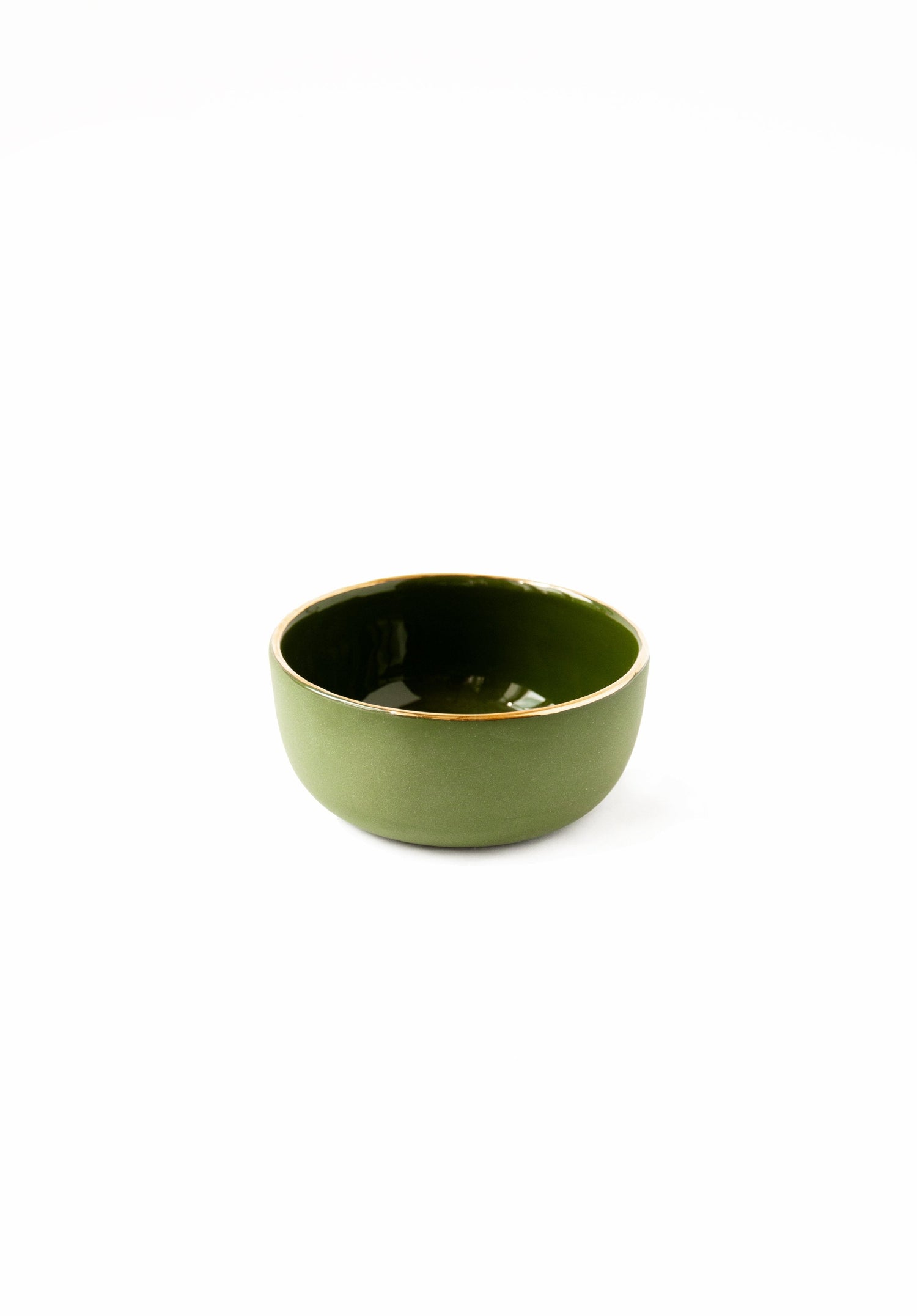 Handmade Porcelain Pinch Bowl with Gold Rim. Green