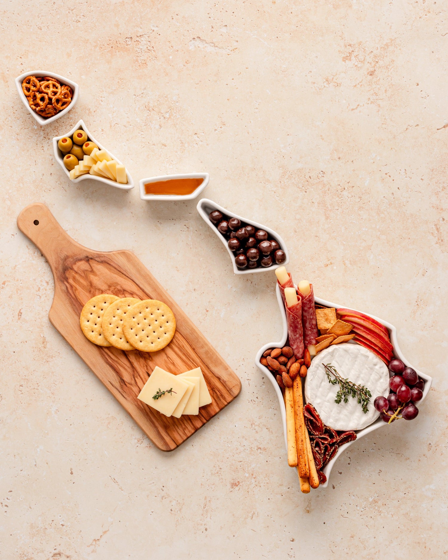 Our Hawaii-shaped porcelain plate captures a taste of the islands — all curves, coastlines, and easygoing spirit. The main island measures 10" × 7.8" × 1.5", and it comes with four island pieces: 4.1" × 3.3" × 1.5", 3.4" × 3.2" × 1.5", 3.1" × 1.6" × 1.5", and 3" × 2.5" × 1.5".