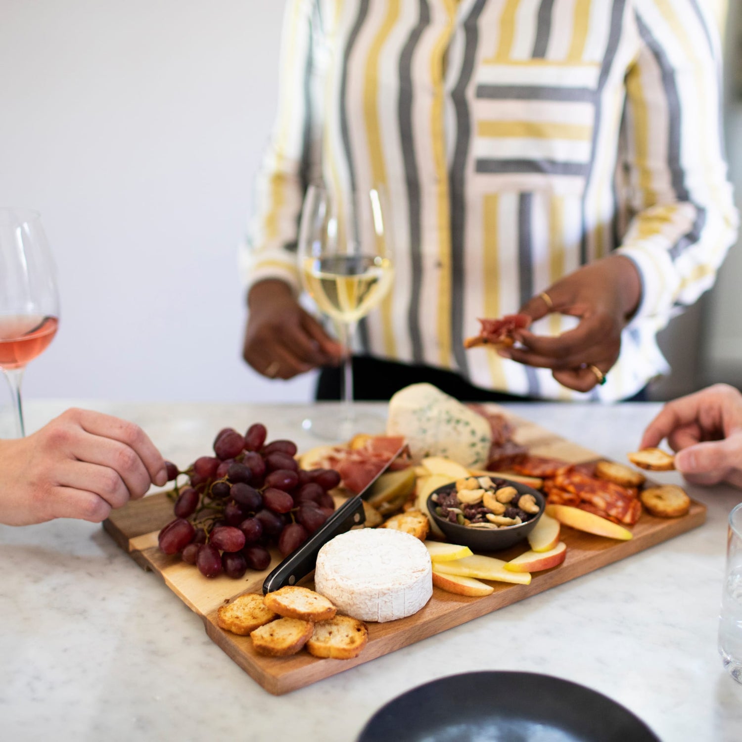 • Engraved handles and durable wood create a subtle, comfortable hold for easy passing, serving, and sharing