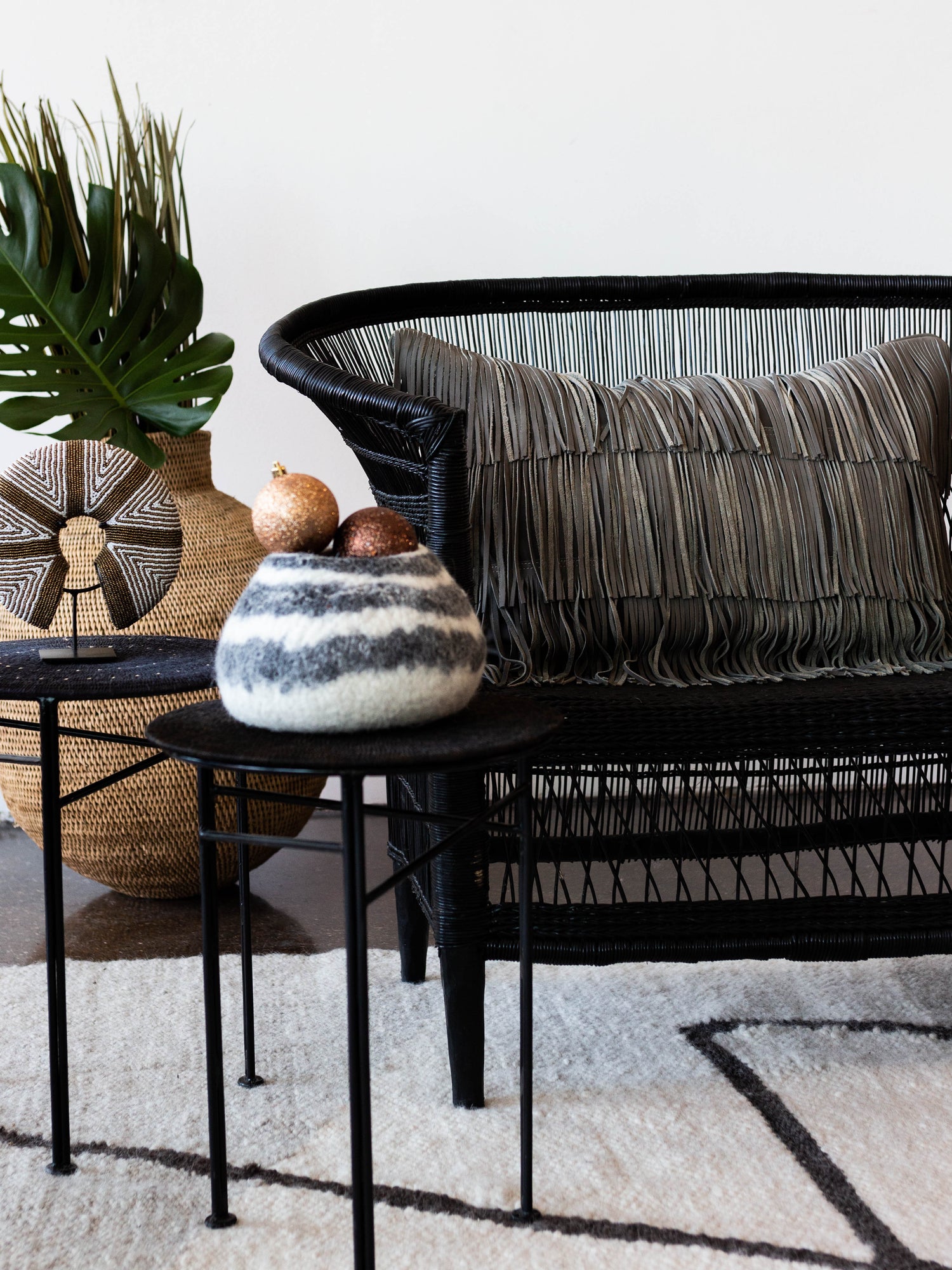 This beautiful bowl blends natural fibers and intricate weaving patterns to create a unique and harmonious design. Handcrafted by skilled artisans, it serves as a versatile and elegant addition to your home décor. Use it as a striking centerpiece, a functional storage solution, or as a decorative accent. Made from eco-friendly and sustainable materials, this bowl adds a touch of cultural charm to any room.