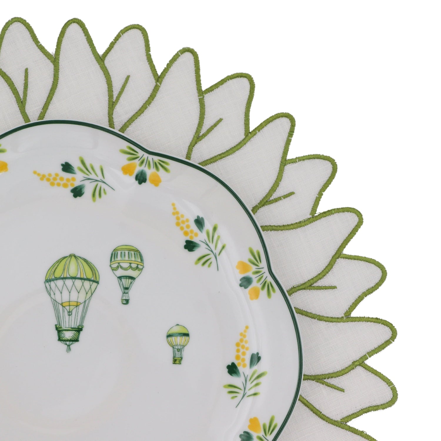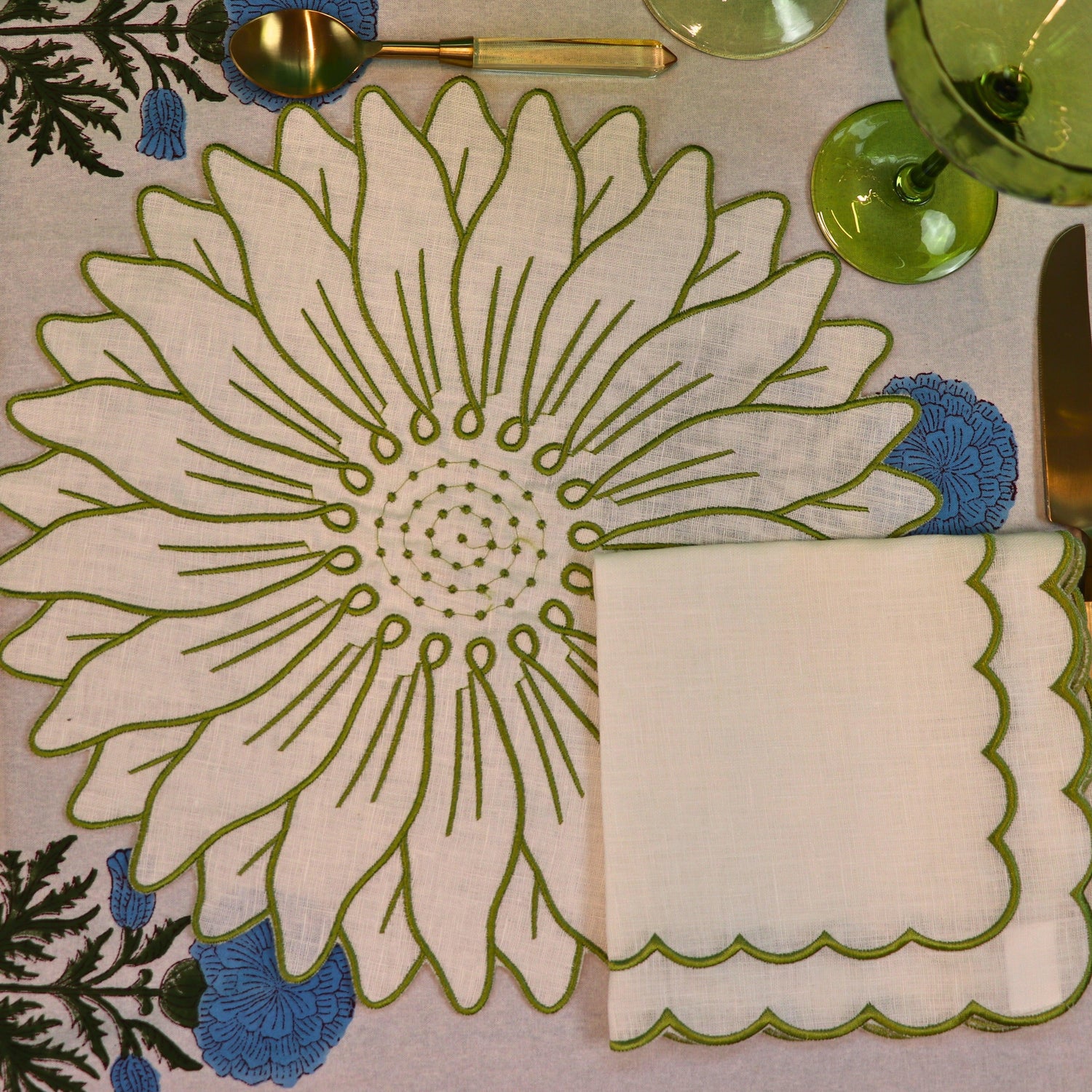 Artisanally crafted in white linen and adorned with a blossoming floral motif in olive green, our Olive Bloom Placemat captures the essence of the picturesque charm of Italian gardens, sun-drenched terraces, and Mediterranean flora. Pair it seamlessly with our coordinating tableware to be transported to an Italian summer