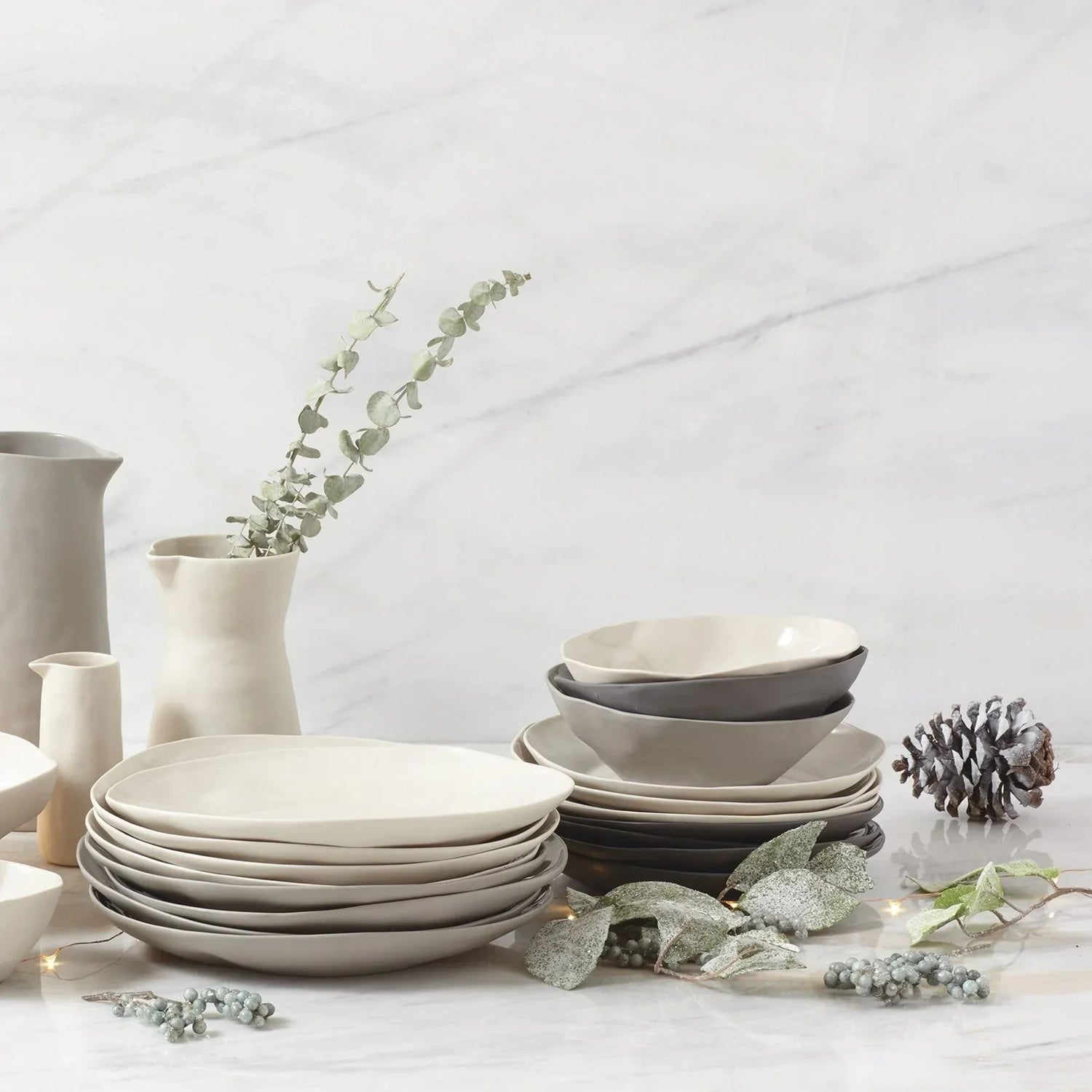 These stunning stoneware favorites bring a whole new meaning to "made with love." Popular for its understated texture and minimal design, each piece is carefully crafted at the hands of women artisans in Vietnam. With hand-crafted plates, bowls, tumblers, and a carafe all showcasing a unique shape, this dinnerware collection is highly sought-after for the sophisticated and organic feel it brings to the table.