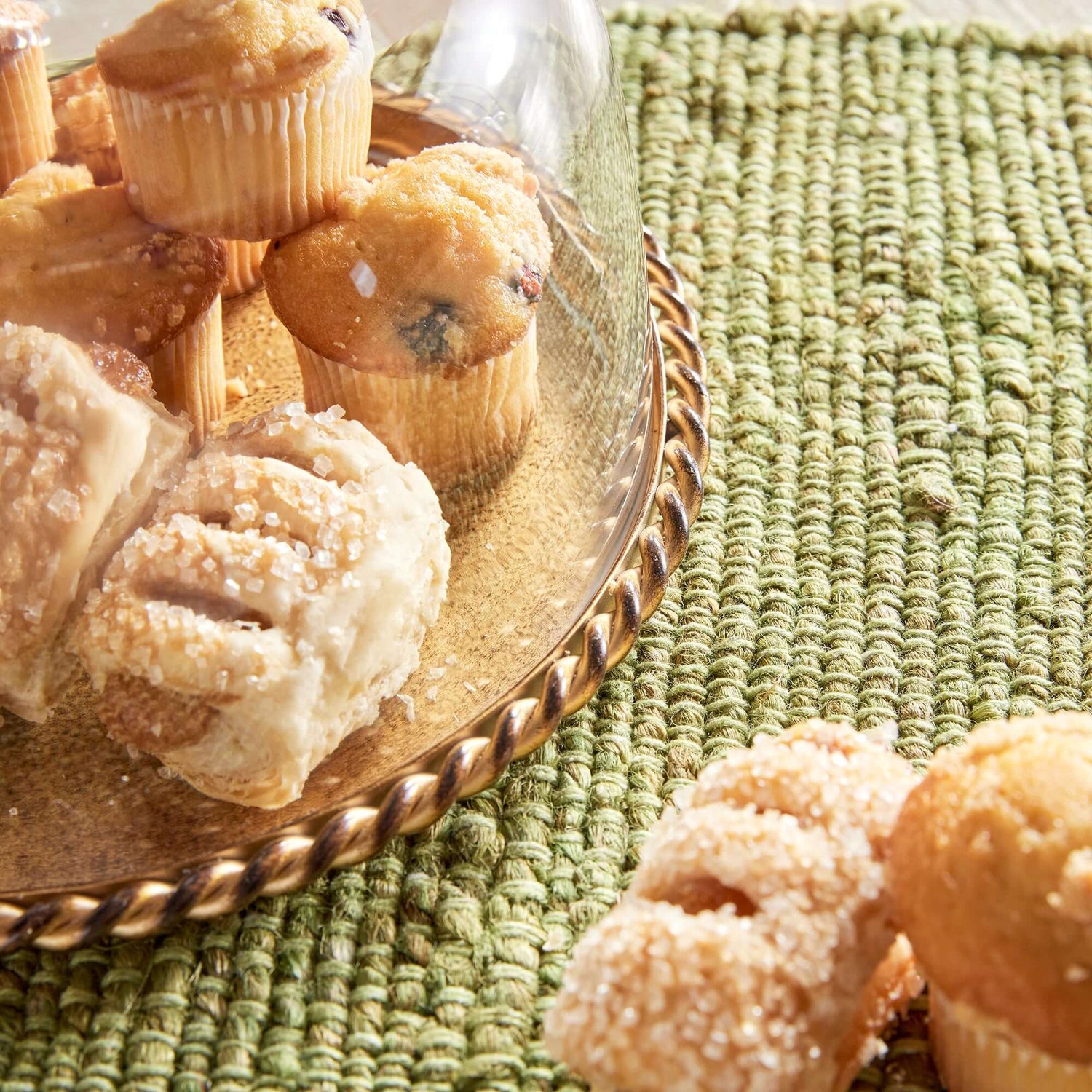 Timeless and enchanting, the small vintage glass cloche with gold braided tray turns everyday offerings into little moments of luxury and warmth.