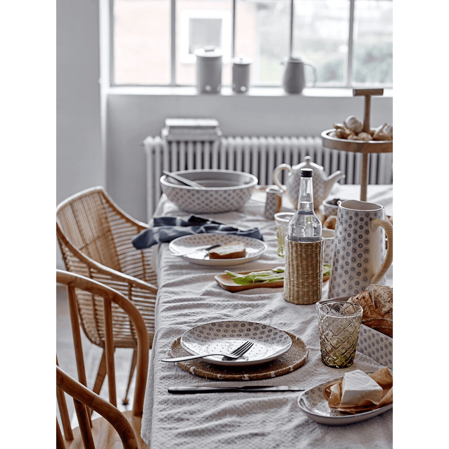 This charming stoneware bowl features a beautiful hand-stamped grey pattern, adding a touch of elegance to your dining experience. Its cream color complements any table setting and its durable material makes it perfect for everyday use. Add this piece to your collection for a bit of country cottage style.