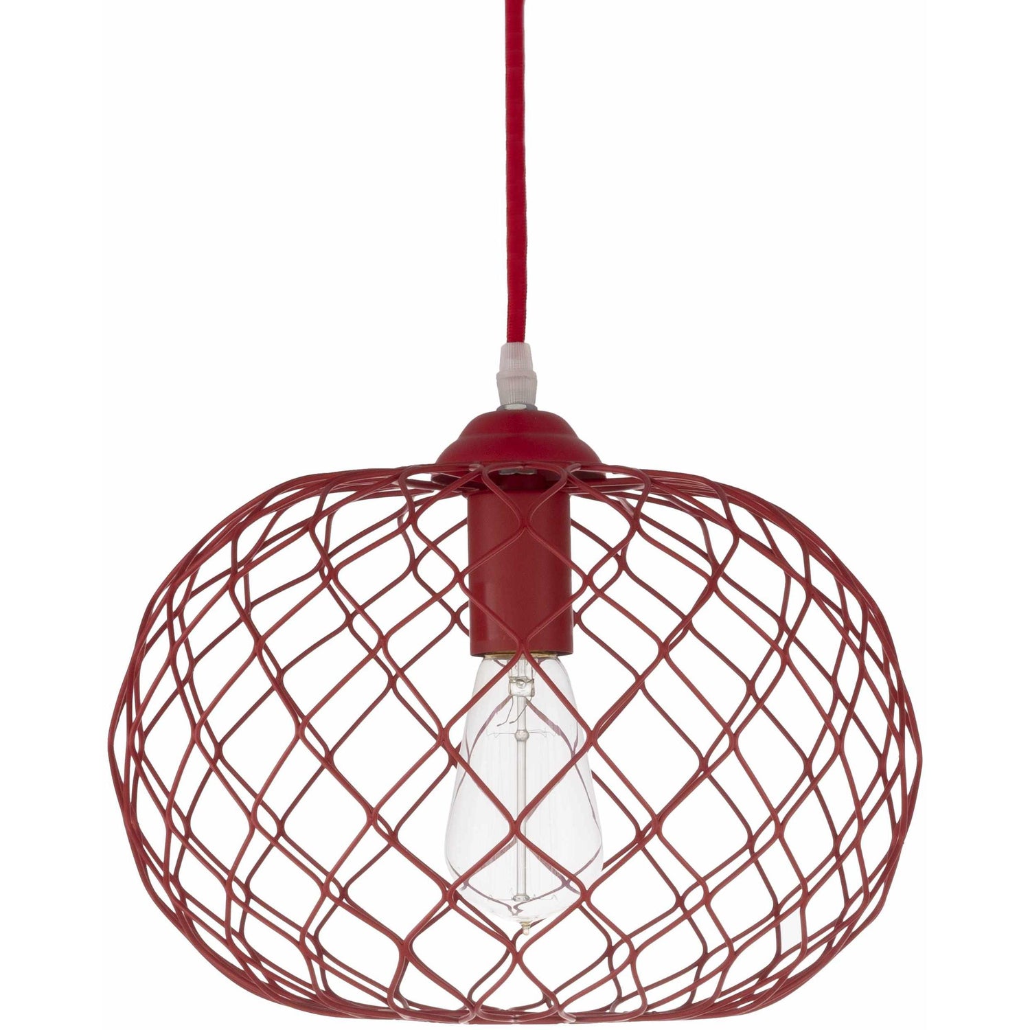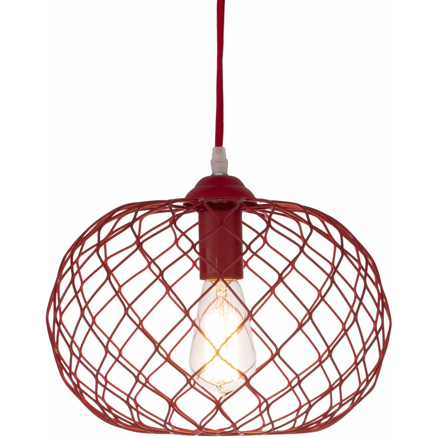 The Oyster Ceiling Light features a sturdy iron fixture finished in red, combining transitional and Bohemian design elements. This pendant light is suspended by a 15-foot cord, providing flexible installation options while delivering focused illumination with a single 40W bulb.