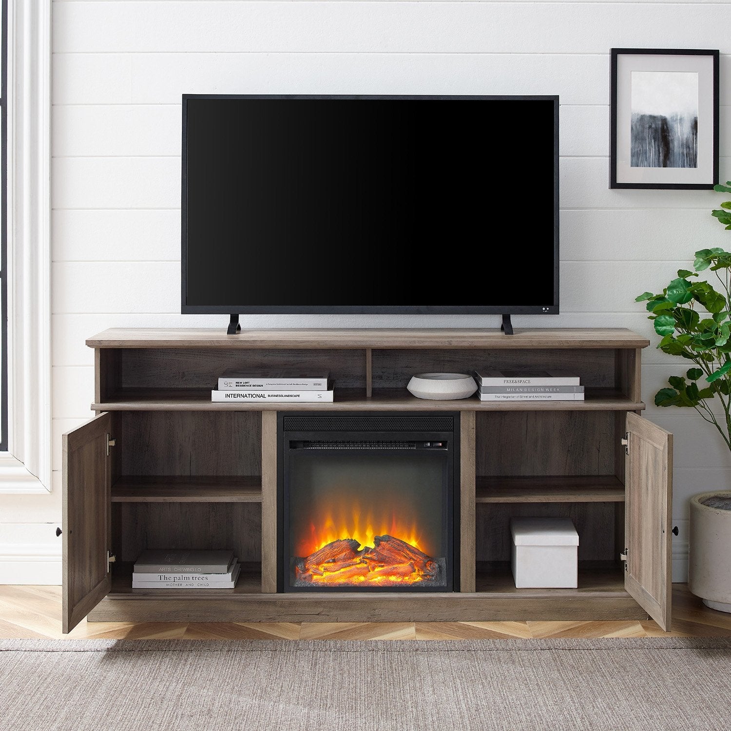 - Features: Electric fireplace insert, cord management, X-front cabinet doors