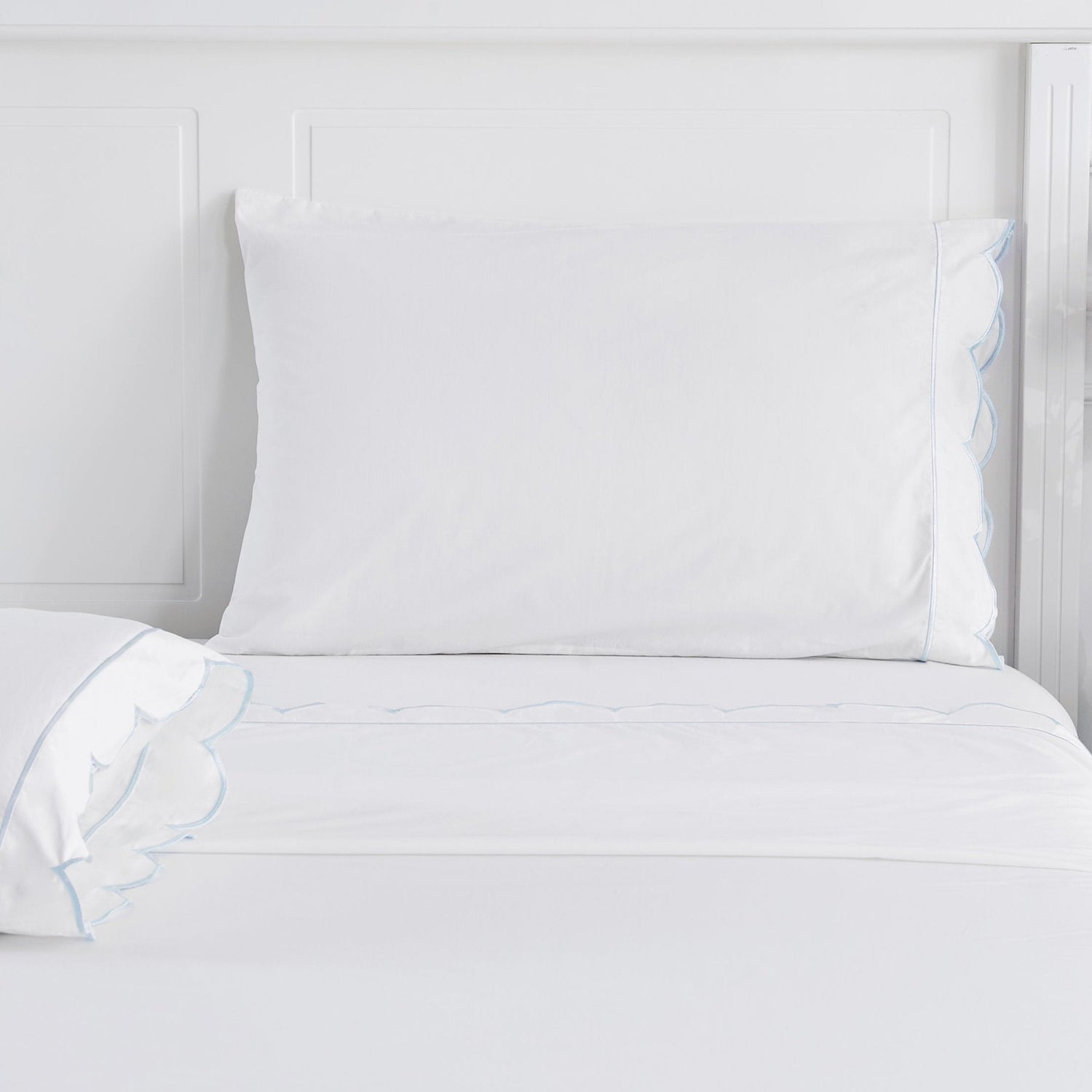 Scallop Frame Embroidered Cotton Percale Pillowcase Pair