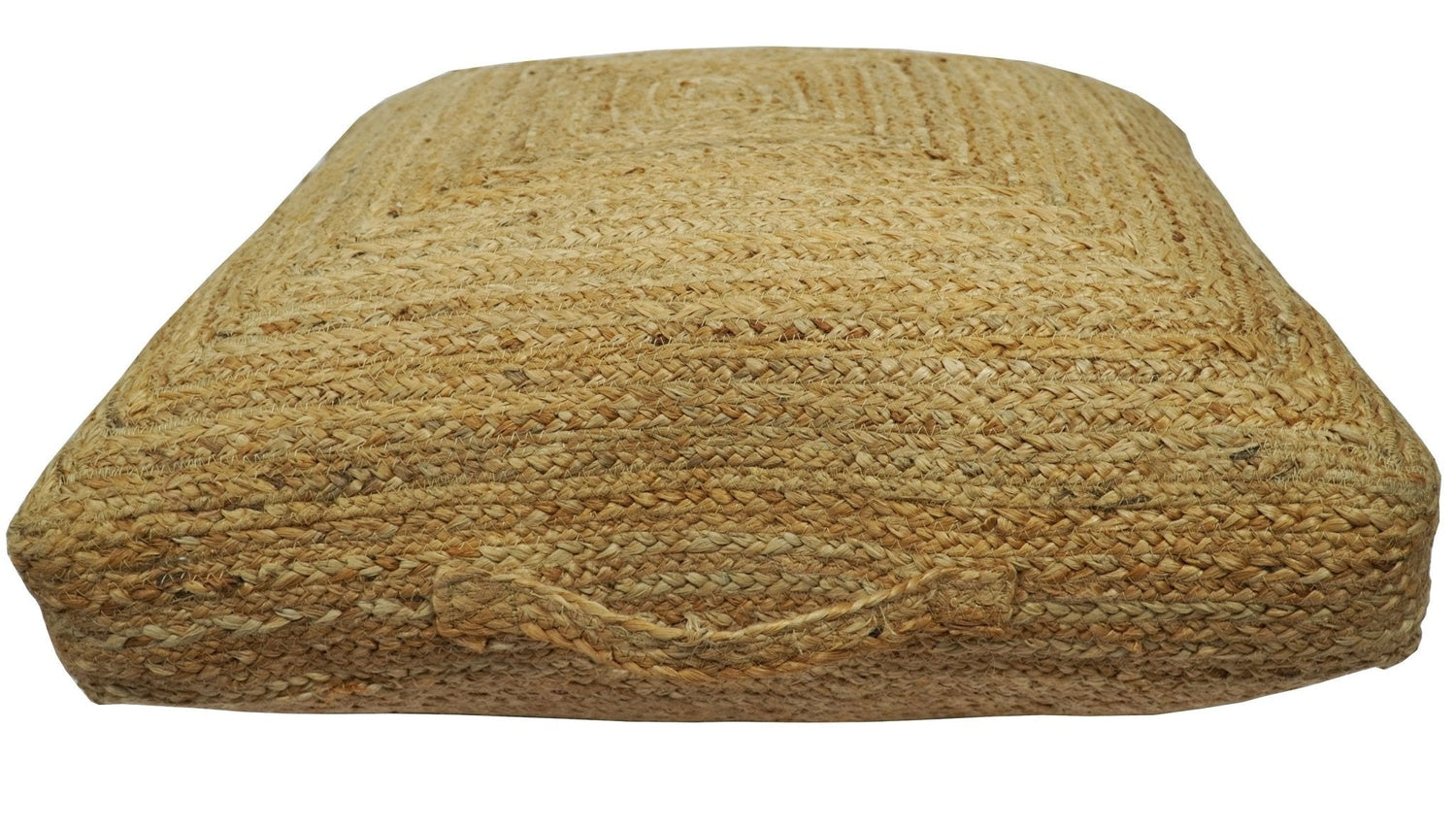 Natural Brown Jute Square Pouf, Hand Braided boho Pouf Ottoman Footstool, Side table, Floor Pillow, Foot Rest, Living Room, Bedroom | JP4