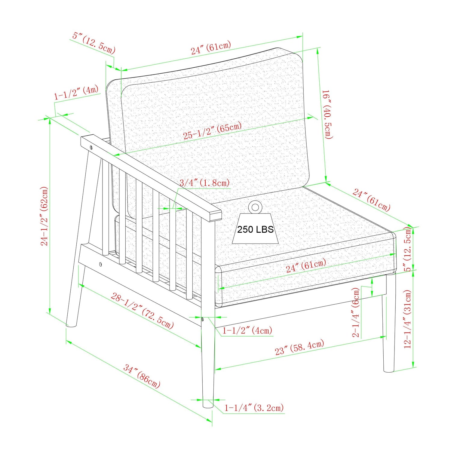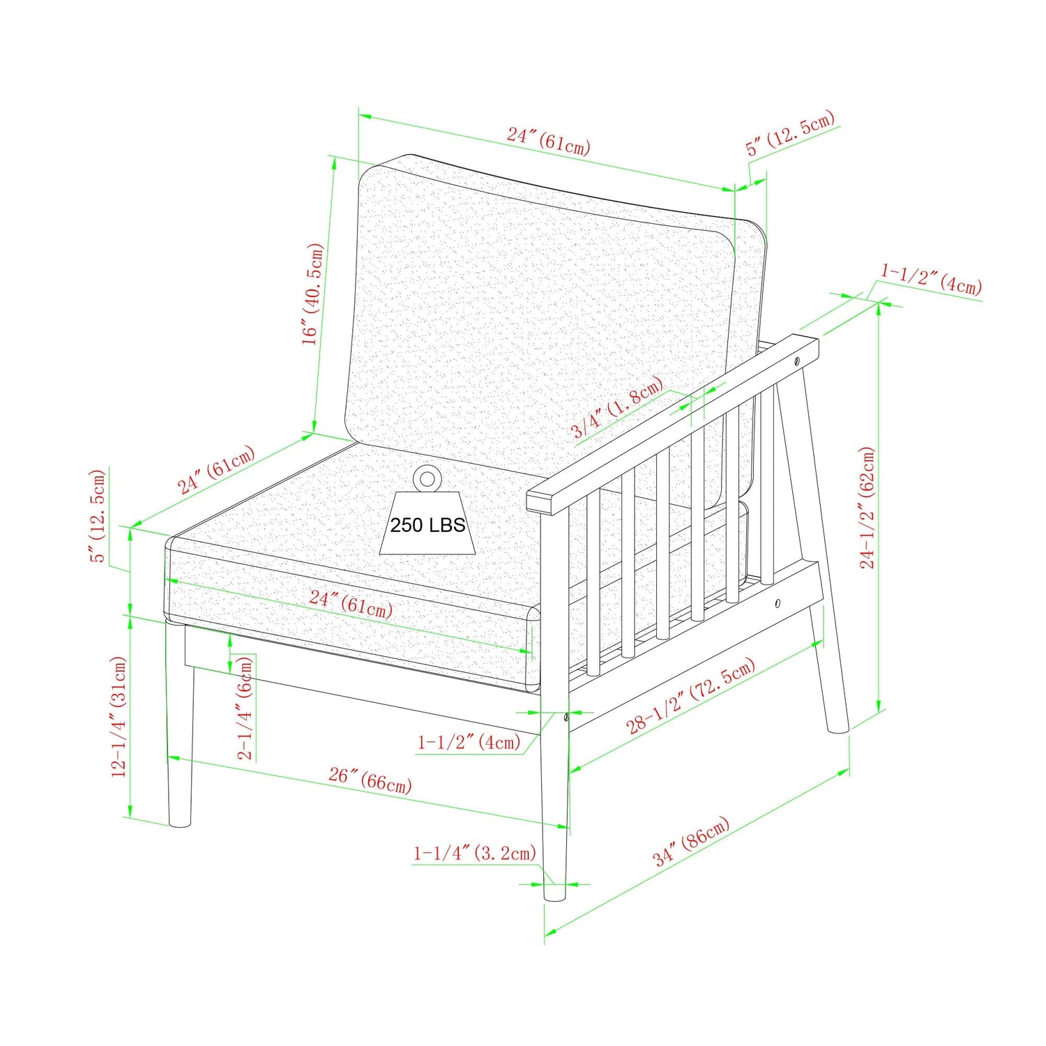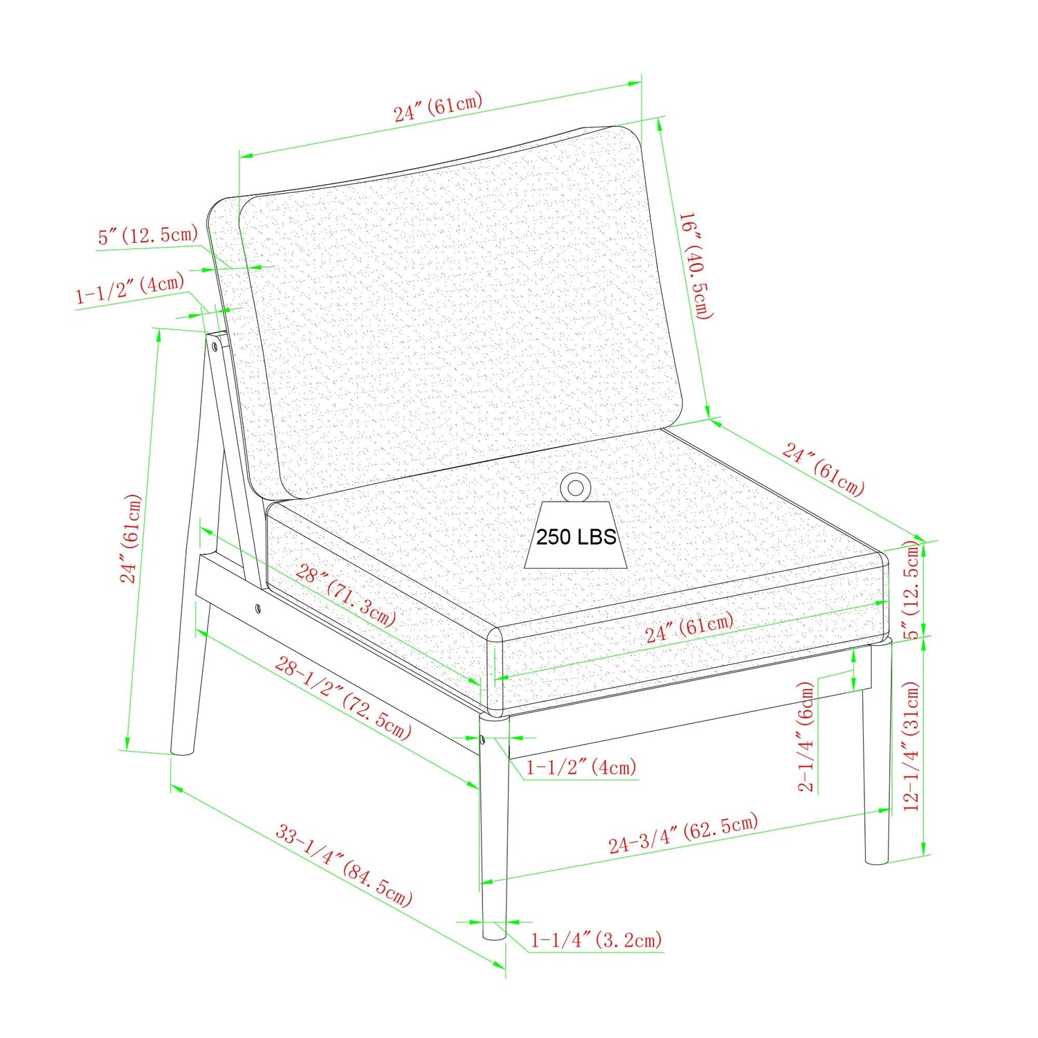 - Armless Sectional: 33.25" H x 24.75" L x 33.25" W (84.5 cm H x 63 cm L x 84.5 cm W), 33 lbs (15 kg)