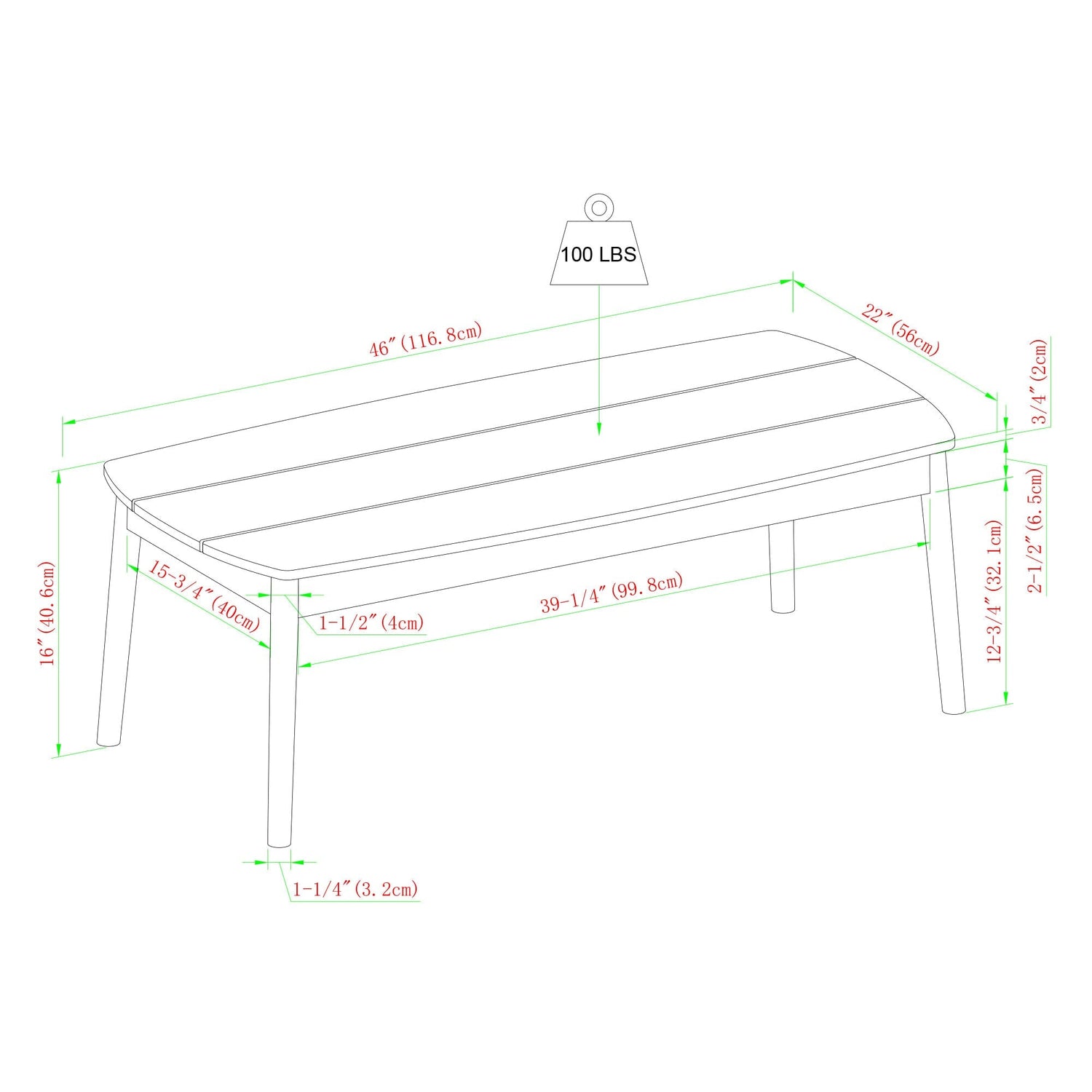 - Coffee Table: 12.25" H x 46" L x 22" W (31.1 cm H x 116.8 cm L x 55.9 cm W), 28 lbs (12.7 kg)