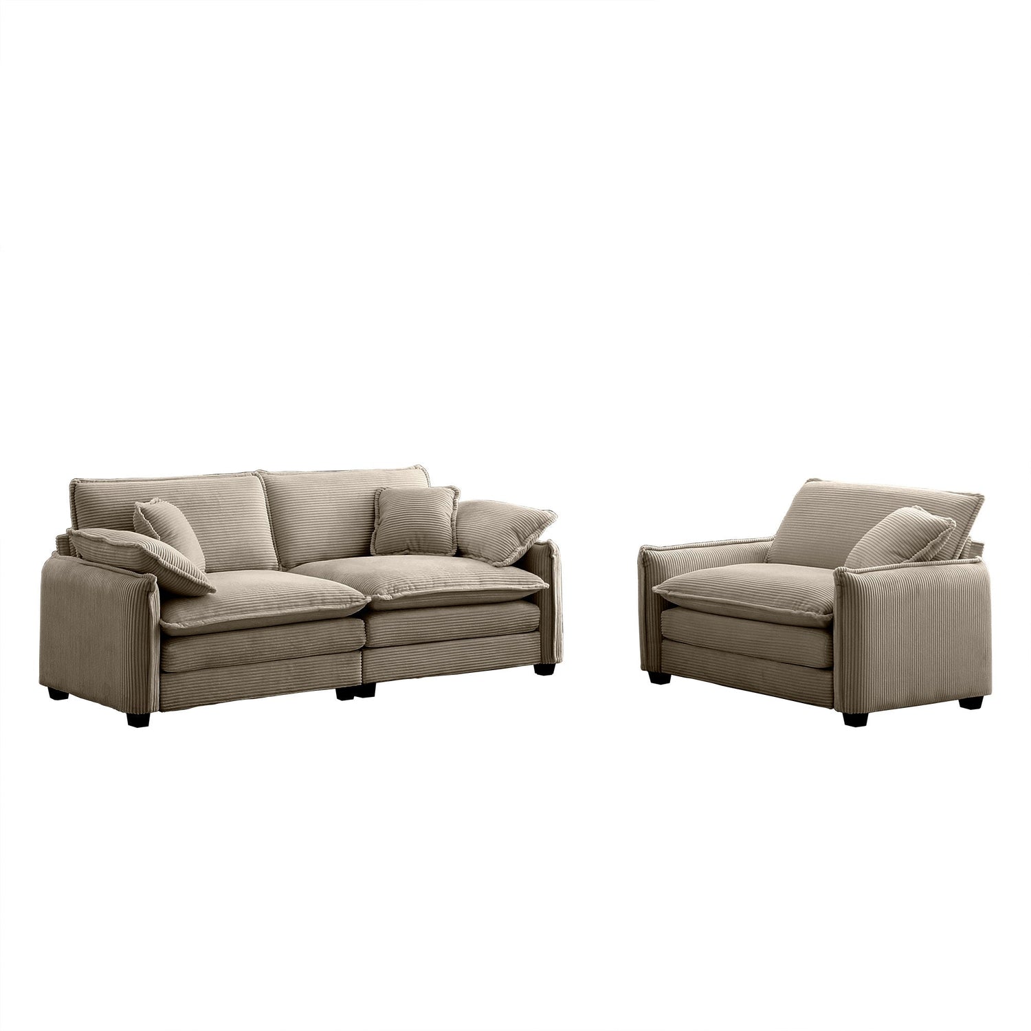 The Cloud Deep Seat Loveseat Sofa Set presents a refined blend of retro-inspired design and contemporary minimalism, crafted with corduroy upholstery that offers a tactile softness reminiscent of silk. Its smooth, flowing contours are complemented by an ergonomic frame and double-layered memory foam cushions, delivering exceptional comfort and support in a compact three-seat configuration.