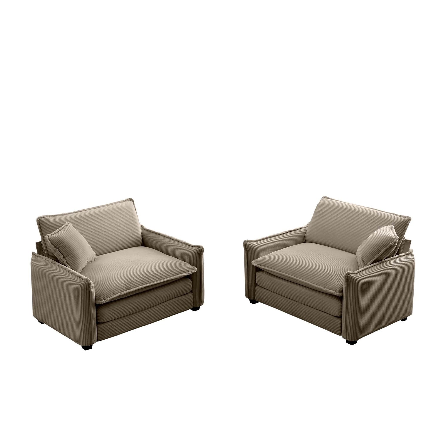 The Corduroy Cloud Deep Seated Accent Sofa Chairs present a refined combination of form and function, featuring two individual sofas upholstered in plush tan corduroy fabric. Their deep seats and wide design provide ample comfort, while the textured corduroy introduces a tactile warmth that complements both modern and classic interiors. The minimalist silhouette ensures these pieces integrate seamlessly into living rooms or office environments, enhancing the space without overwhelming it.