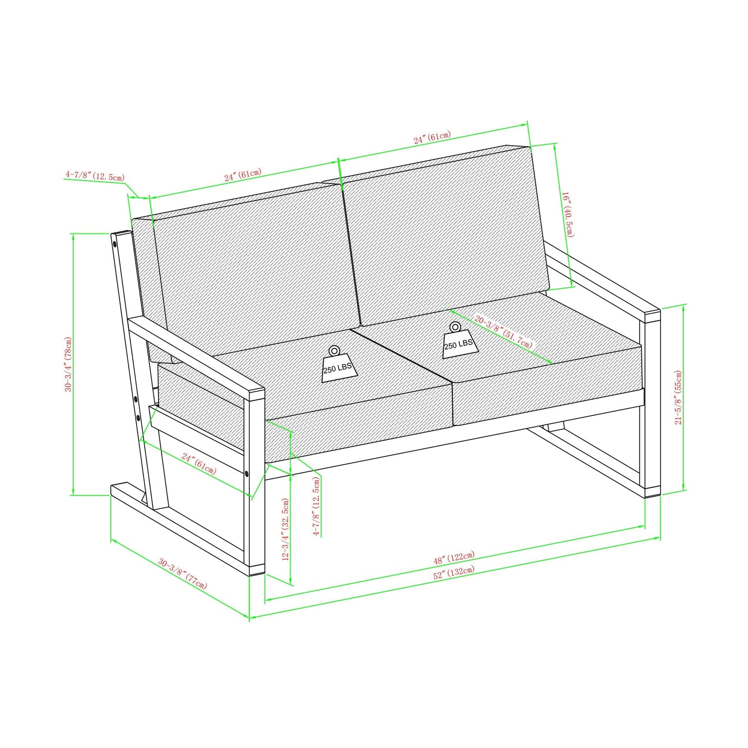 • Dimensions: 52” L x 30.38” W x 30.75” H (132.1 cm x 77.1 cm x 78.1 cm)