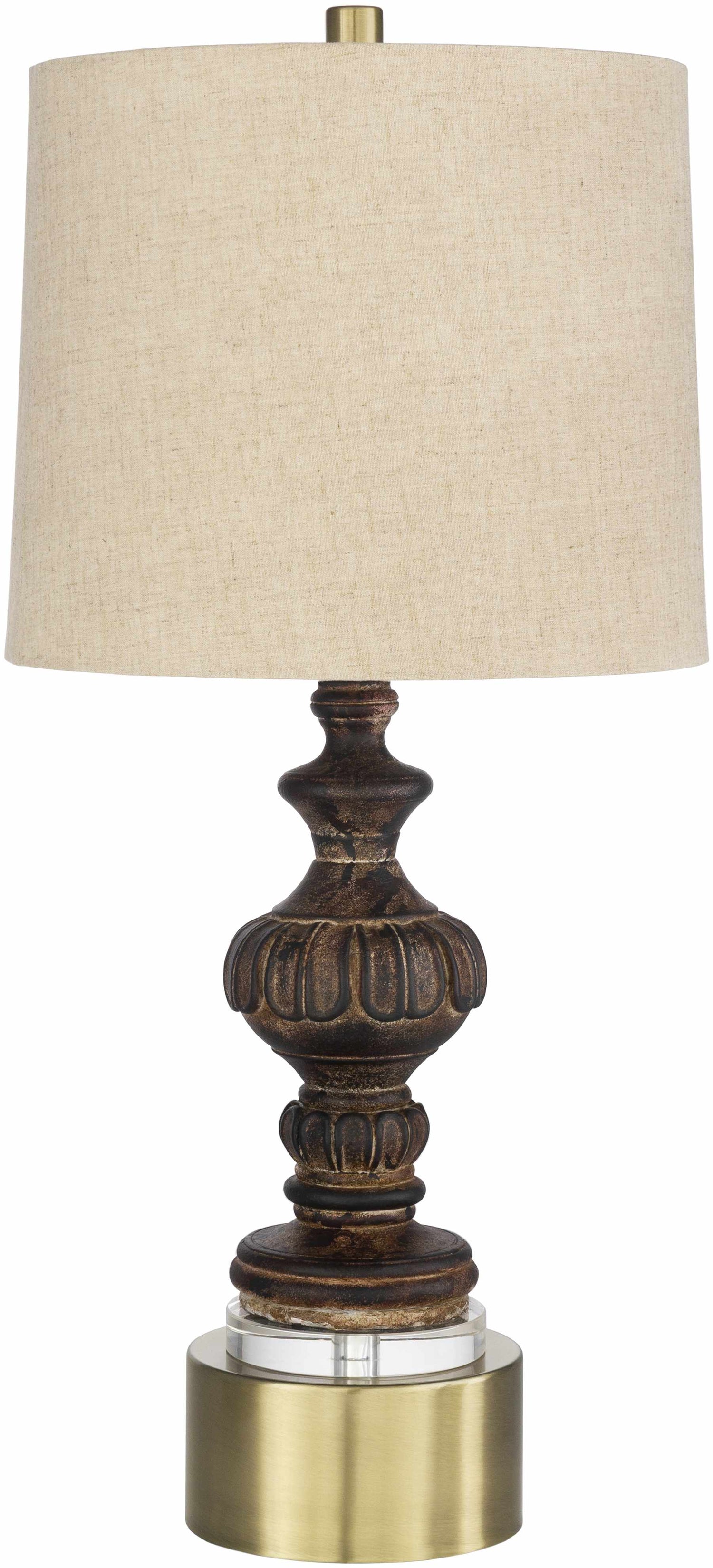 Material: Body: Resin,Shade (Outside): Linen,Base: Iron,Finial: Iron,Shade (Inside): Metal |