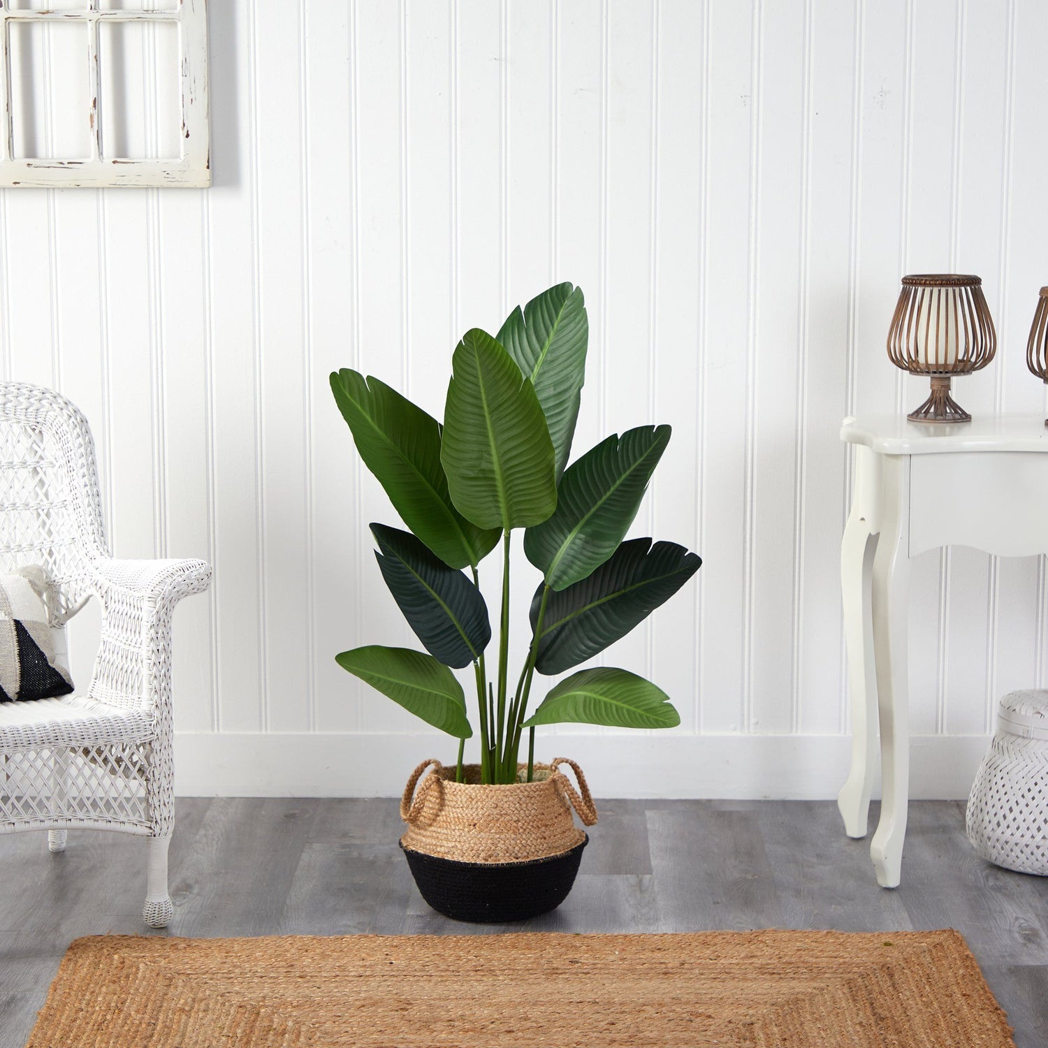 4’ Travelers Palm Artificial Tree in Boho Chic Handmade Cotton & Jute Black Woven Planter