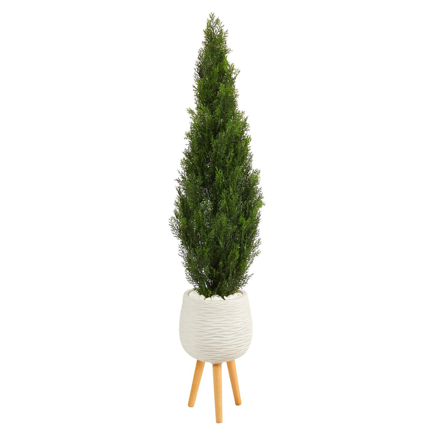 5' Cedar Artificial Tree in White Planter with Stand (Indoor/Outdoor)