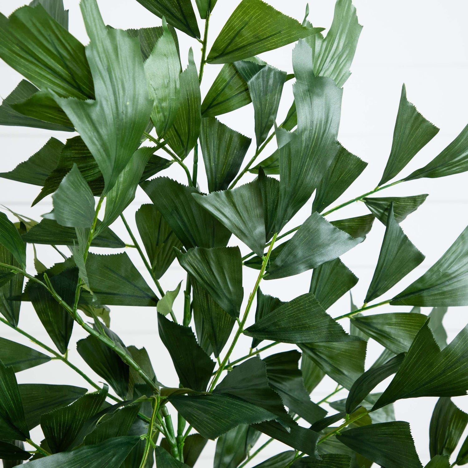 Many small green leaves overlap in a tightly clustered display, leaving no space in the sand colored planter unfilled with this artificial fishtail palm tree. Standing 5-feet tall, its simplistic design will fit in well with any arrangement, but at the same time give a subtle pop of greenery to the space. Use it to decorate your breakfast nook for a lovely natural finish.