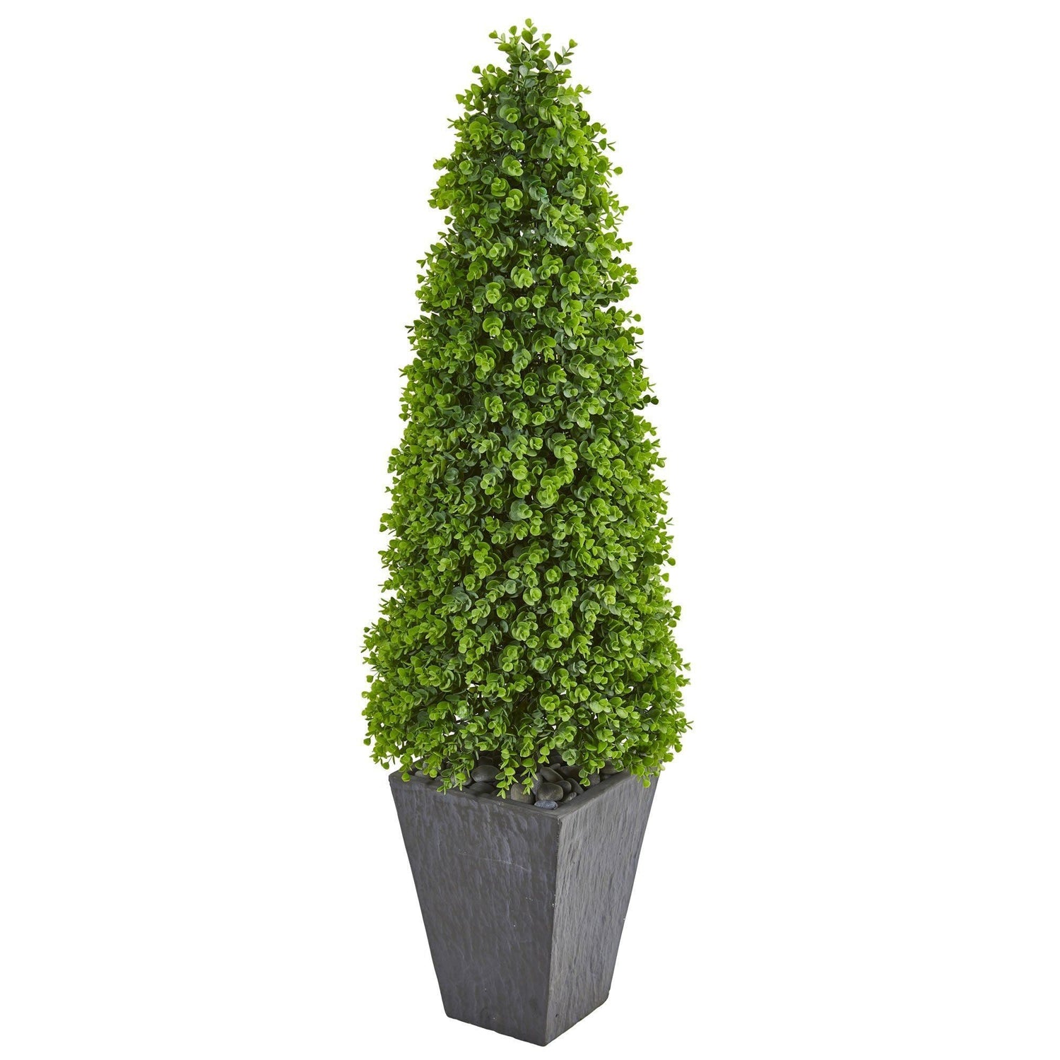 57” Eucalyptus Topiary Artificial Tree in Slate Planter (Indoor/Outdoor)
