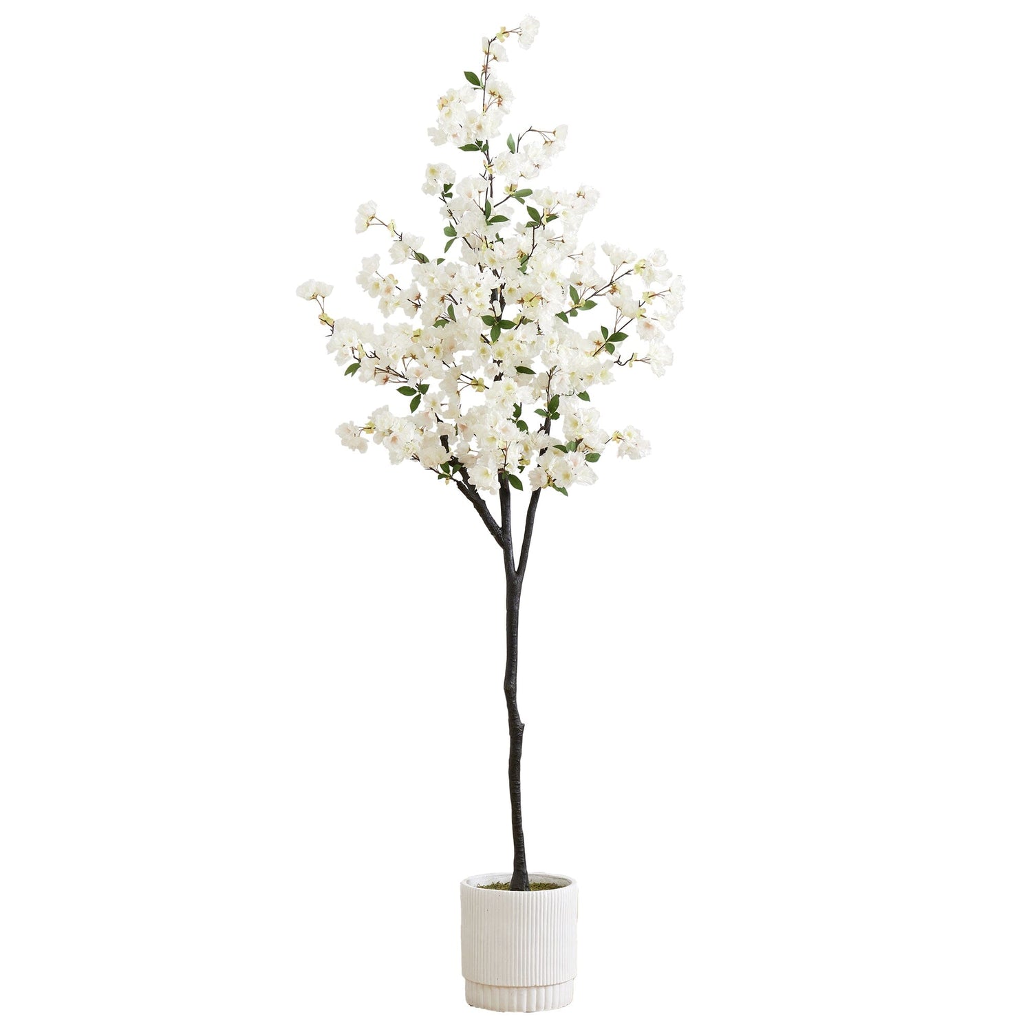 Who says cherry blossoms are only for spring? With our lifelike faux cherry blossom tree, you can have year-round blooms. Inspired by Japan's forests, each petal has naturally occurring details stemming from a thin branch. The tree is crafted from high-quality materials by horticulturists, so feel free to bend its branches for a custom fit. Standing 6' from a decorative planter, it can be displayed in any area. Ideal for a living room, entryway or bathroom.