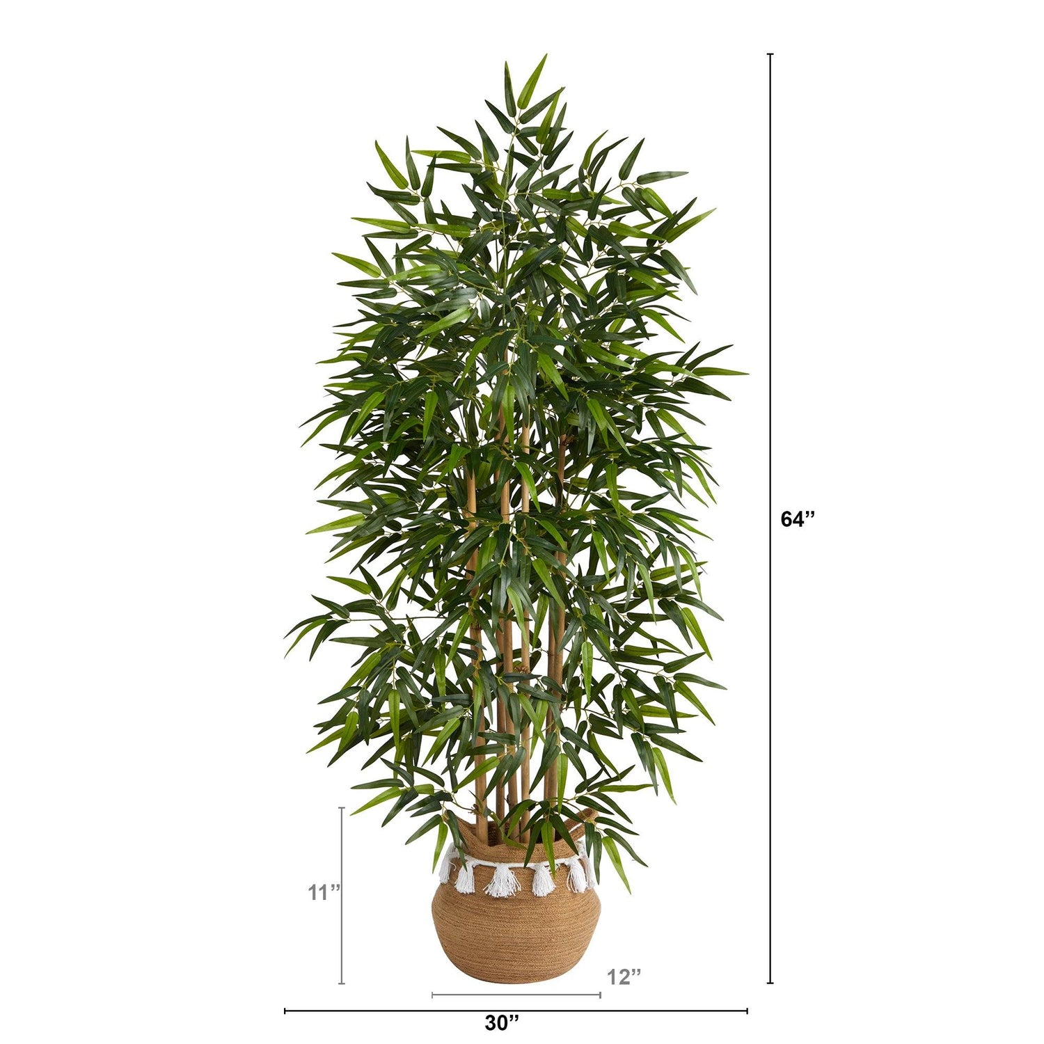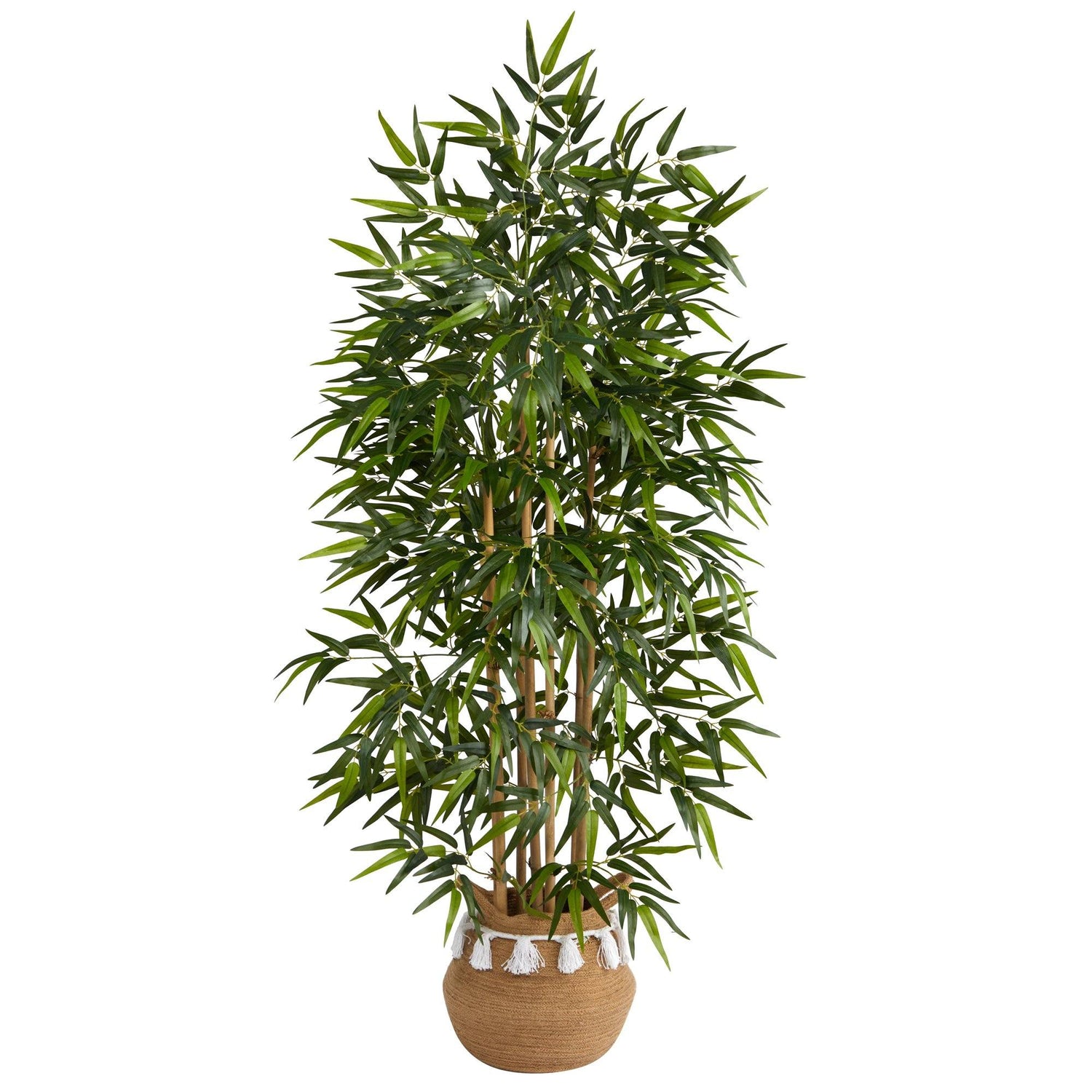 64” Bamboo Tree with Natural Bamboo Trunks in Boho Chic Handmade Natural Planter with Tassels