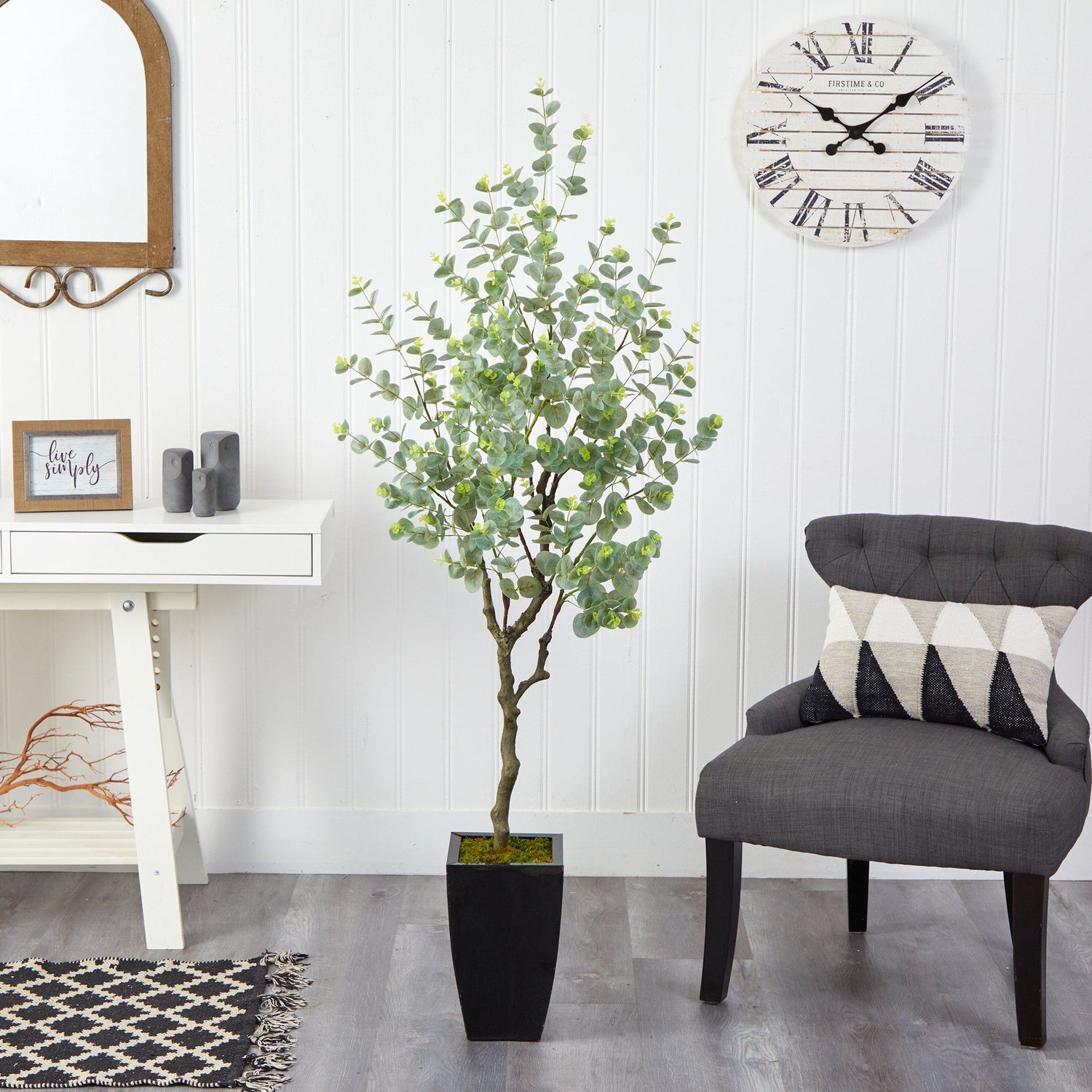 64” Eucalyptus Artificial Tree in Black Metal Planter