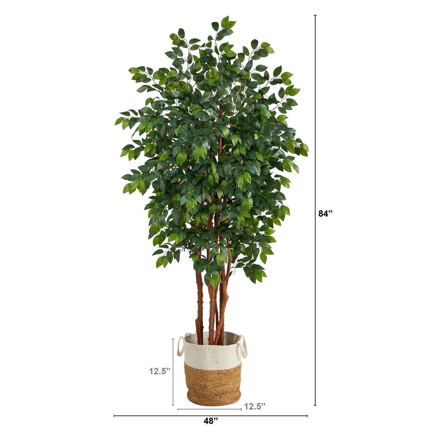 Are you looking for some Zen in your space? Bring an oriental touch with this Sakaki Artificial Tree - native to the tropical regions of Japan, Myanmar, and Nepal. Elegantly showcase green, variegated leaves from 1862 slender bendable branches that arch from 3 braided, slim natural trunks. Standing at 7’, from a jute planter (included in height), this appealing tree gives spaces such as kitchen nooks, living rooms and offices a refresh. Start relaxing today.