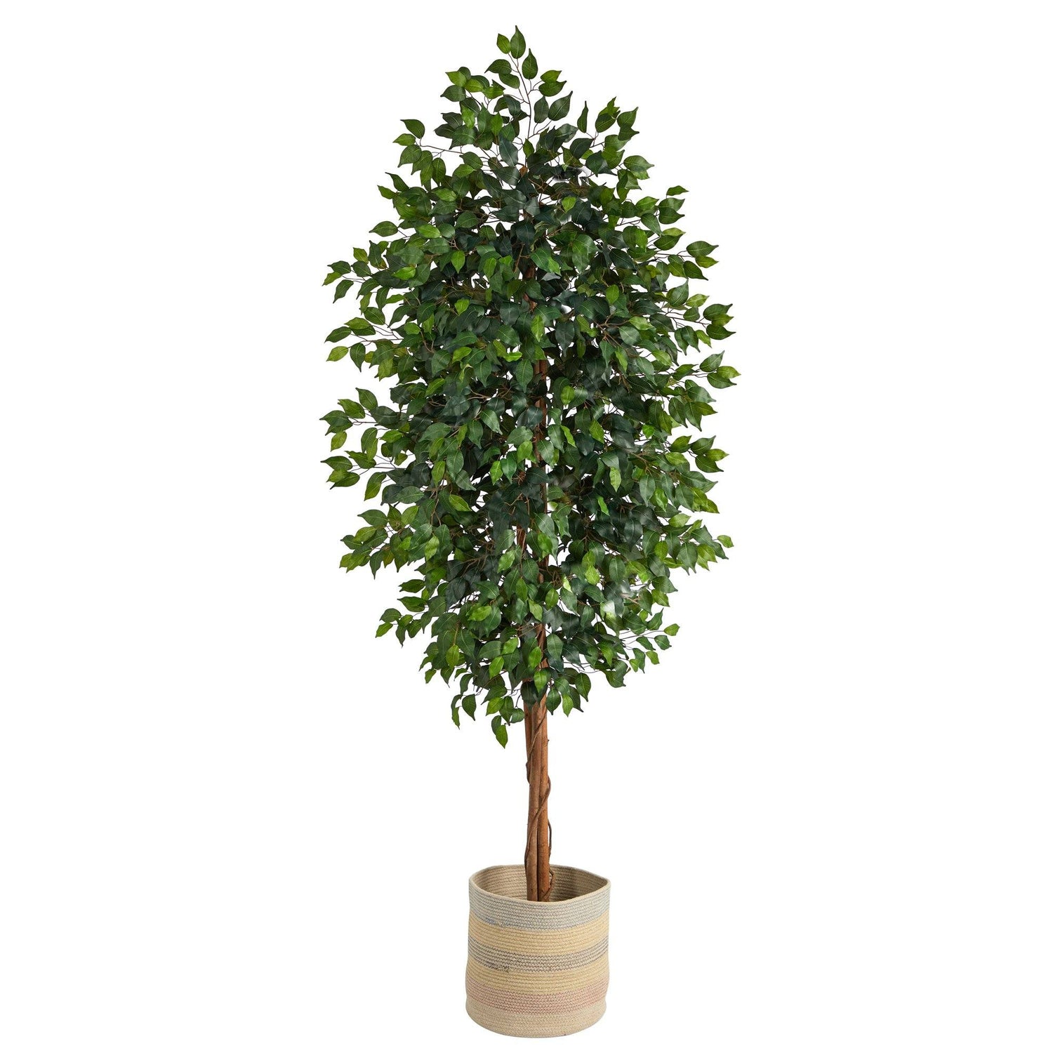 8’ Ficus Artificial Tree with Handmade Natural Cotton Multicolored Woven Planter