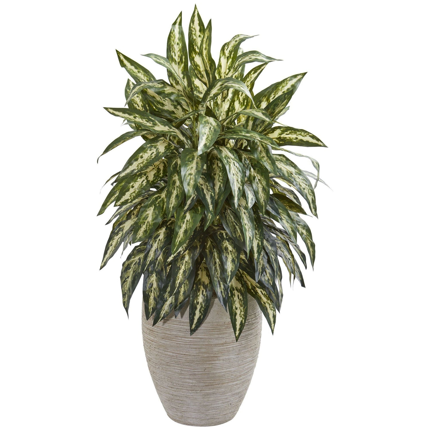 The artificial aglonema plant’s vibrant greenery will liven up your bedroom, dining room, or loving room setup. It has many variegated leaves that overlap one another in stunning layers, leaving no space unfilled in the sand colored planter. For a lush tropical look, position this artificial plant on a side table with other flowering plants with bright blossoms that will accent it.