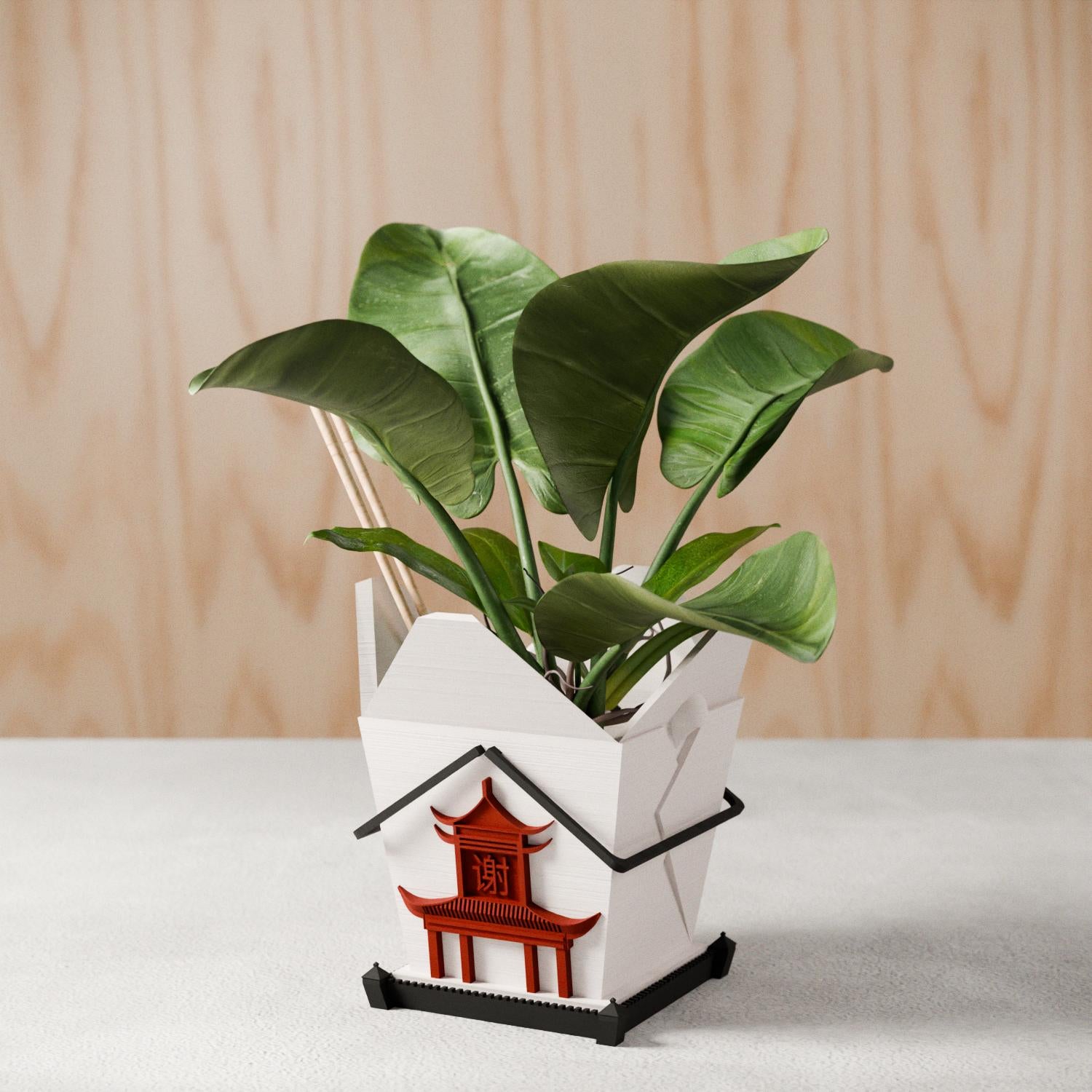 We designed the Chinese Takeout planter to offer a playful nod to cultural icons, blending the charm of the classic takeout box with functional design. With its intricate detailing and vibrant accents, this planter adds a unique and whimsical touch to your decor, all while serving as a creative home for your plants. The drip tray/saucer is custom-fitted and designed to perfectly complement the planter.