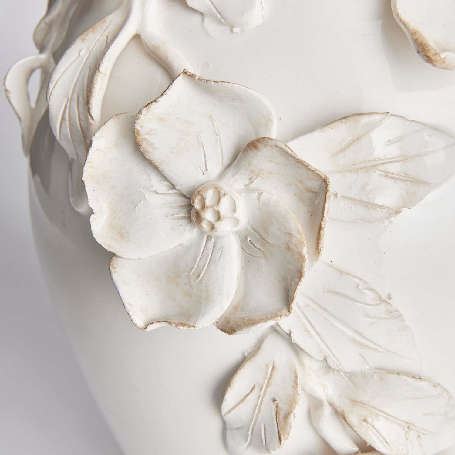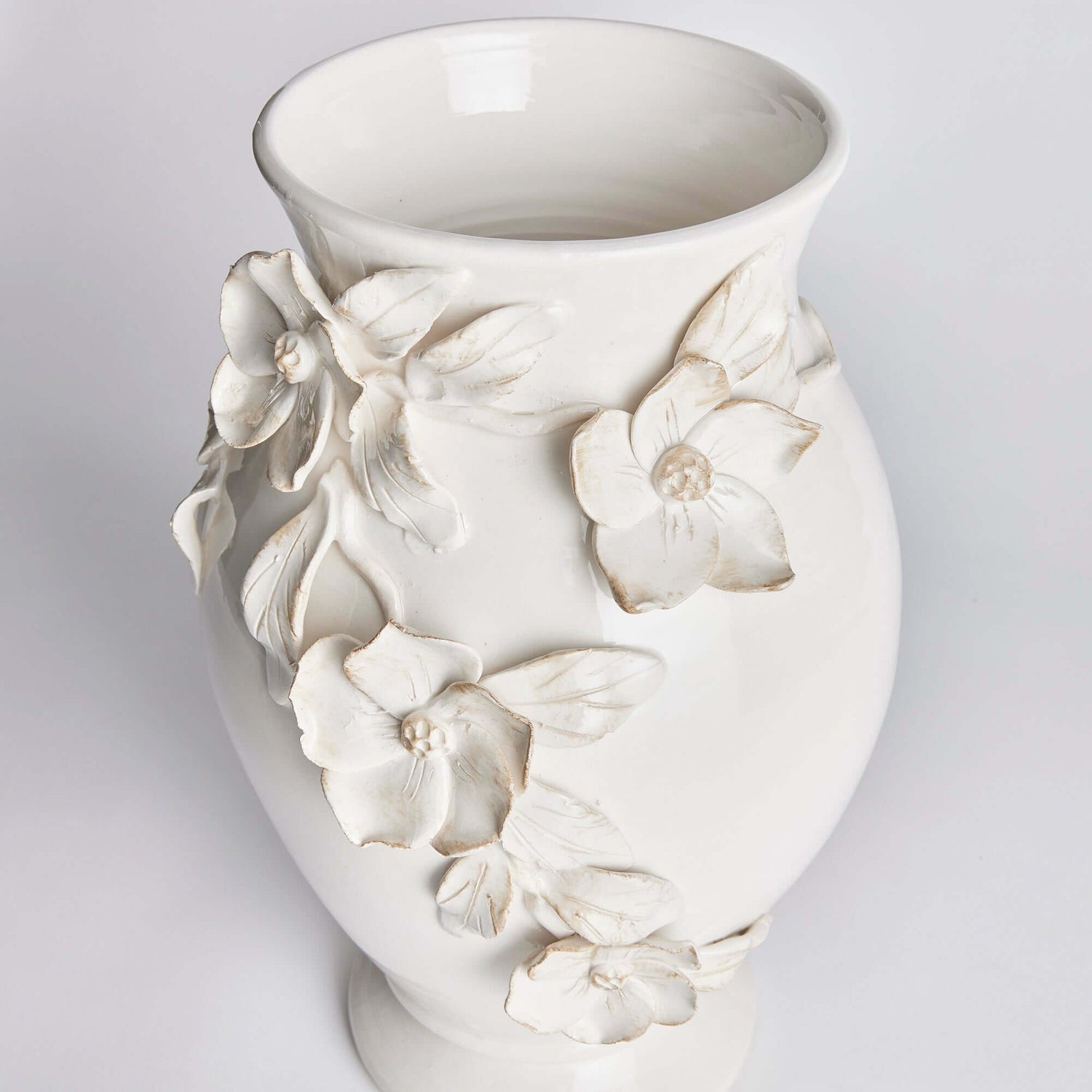 Glazed in a soft, luminous white with subtle antiquing brushed along the petal edges, this Handmade Italian Dogwood Flower Vase exudes a romantic, old-world elegance. The seamless design and grand scale make it a stunning centerpiece for a feature table, kitchen island, or mantel, bringing a touch of refined history into any home. The gentle texture of the petals against the glossy body invites a closer look, each flower telling its own quiet story of patience and skill.
