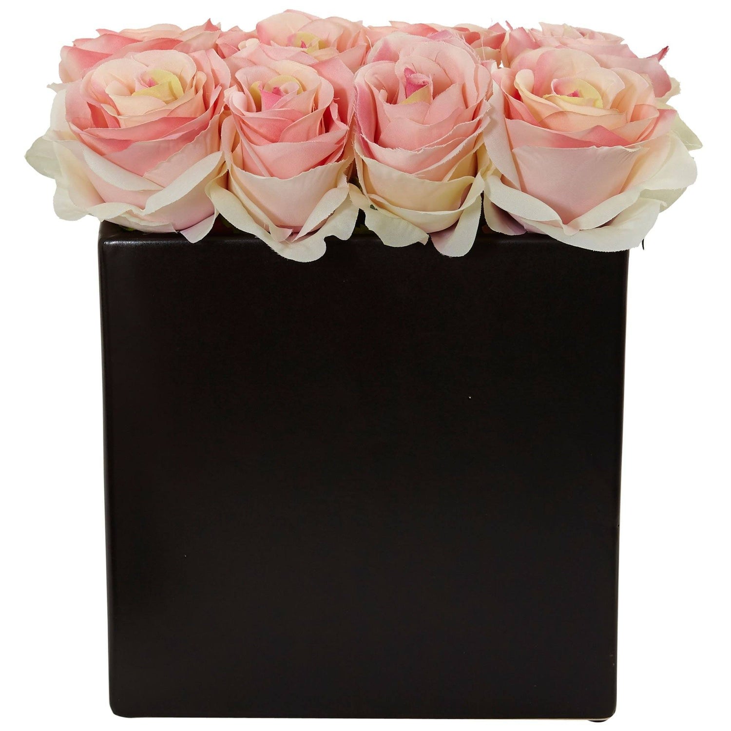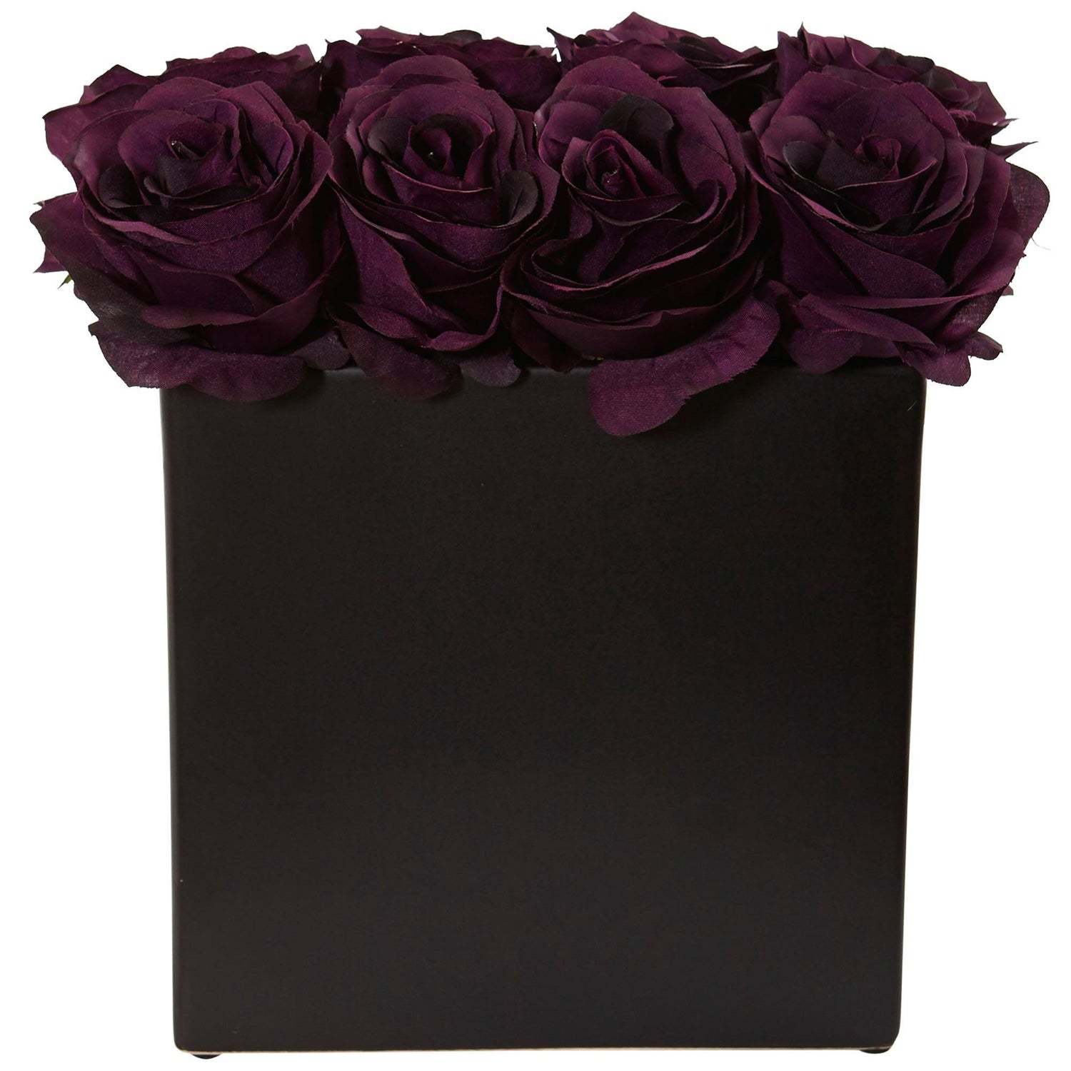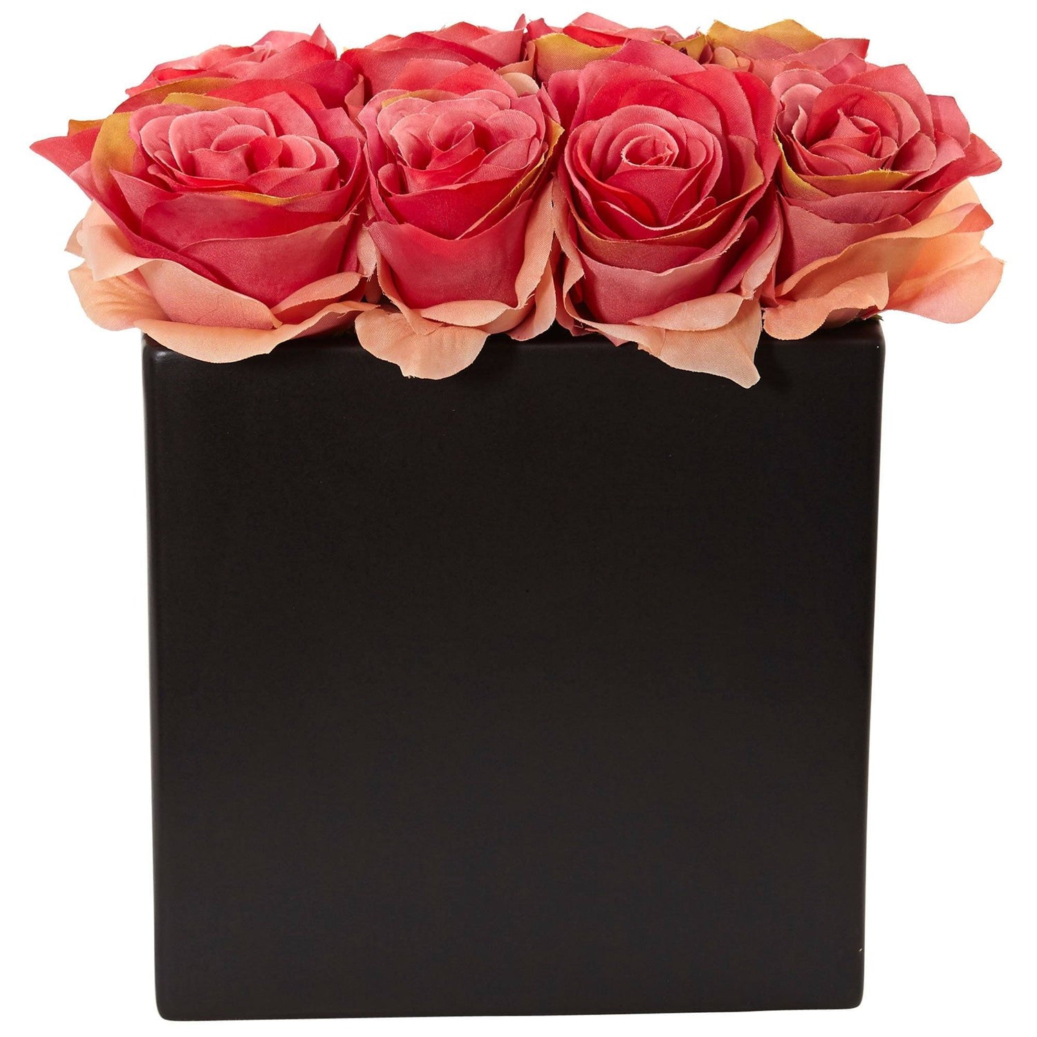This elegant realistic rose arrangement comes in a dramatic black square vase. It makes a statement wherever it’s placed. Perfect as an elegant centerpiece or for a touch of unexpected beauty in a boardroom or other professional place.
