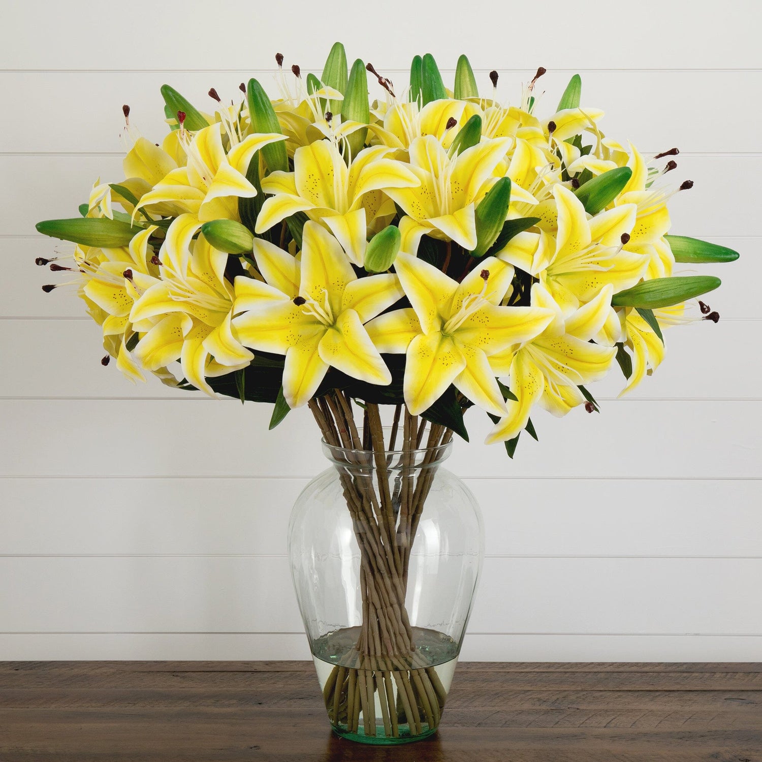 Signature Collection 29” Lily Artificial Arrangement in Glass Vase