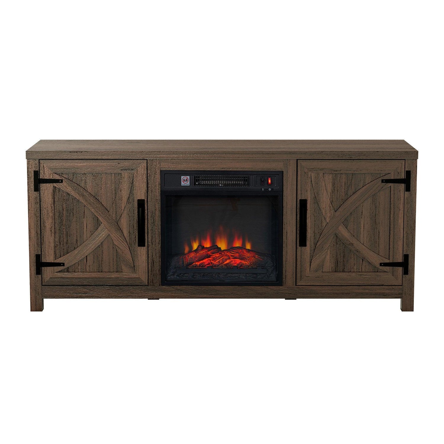 58" Farmhouse TV Stand with 18" Insert Electric Fireplace for Living Room