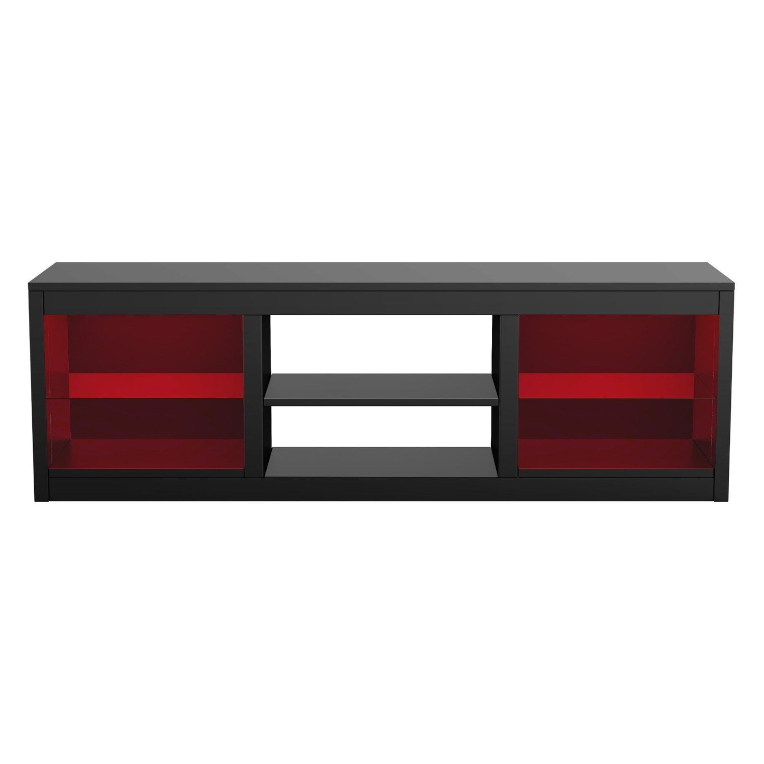 Enhance the aesthetic appeal of your home with this contemporary LED TV cabinet! This chic white/black TV console table boasts a sleek design with clean lines. Crafted from robust and resilient wood, it offers multiple LED color options to add a dash of excitement to your life. Its open storage space not only helps to maintain a neat and tidy environment but also caters to your storage needs efficiently.